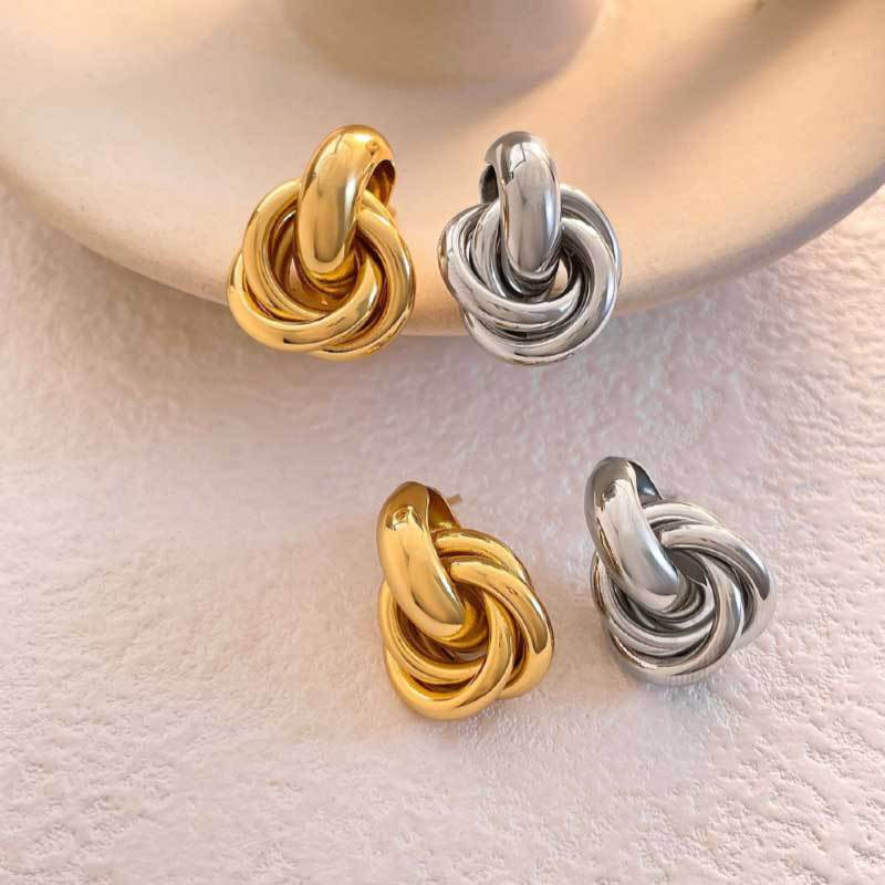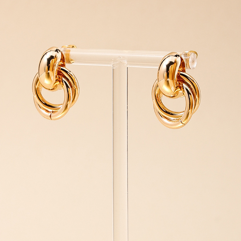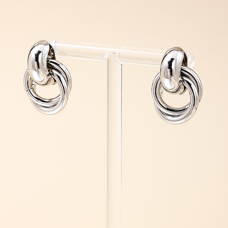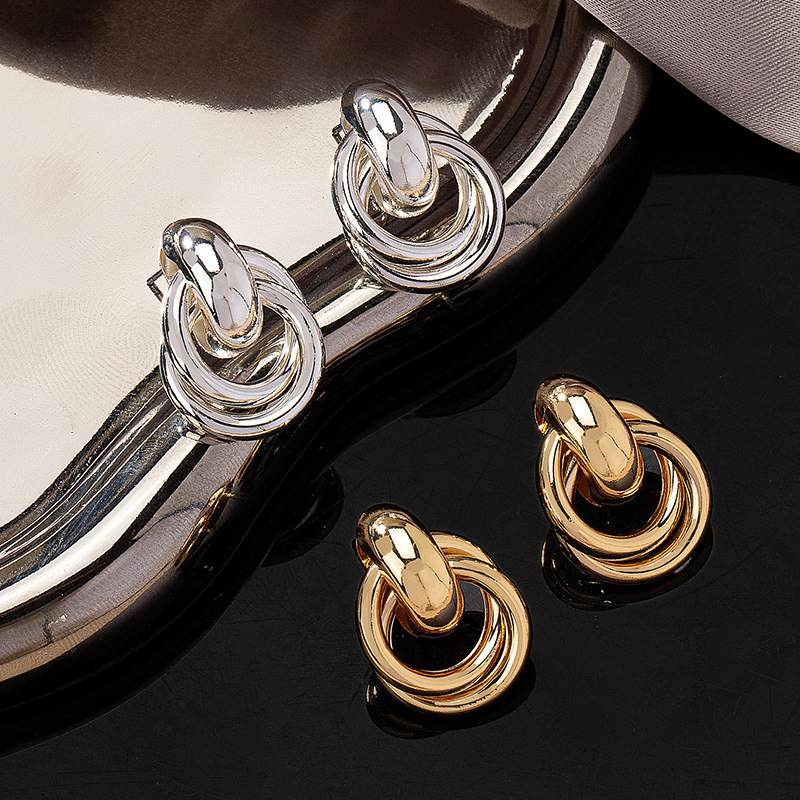 跨境欧美风金色银色圆圈几何扭曲多层麻花耳环小众设计感时尚耳饰