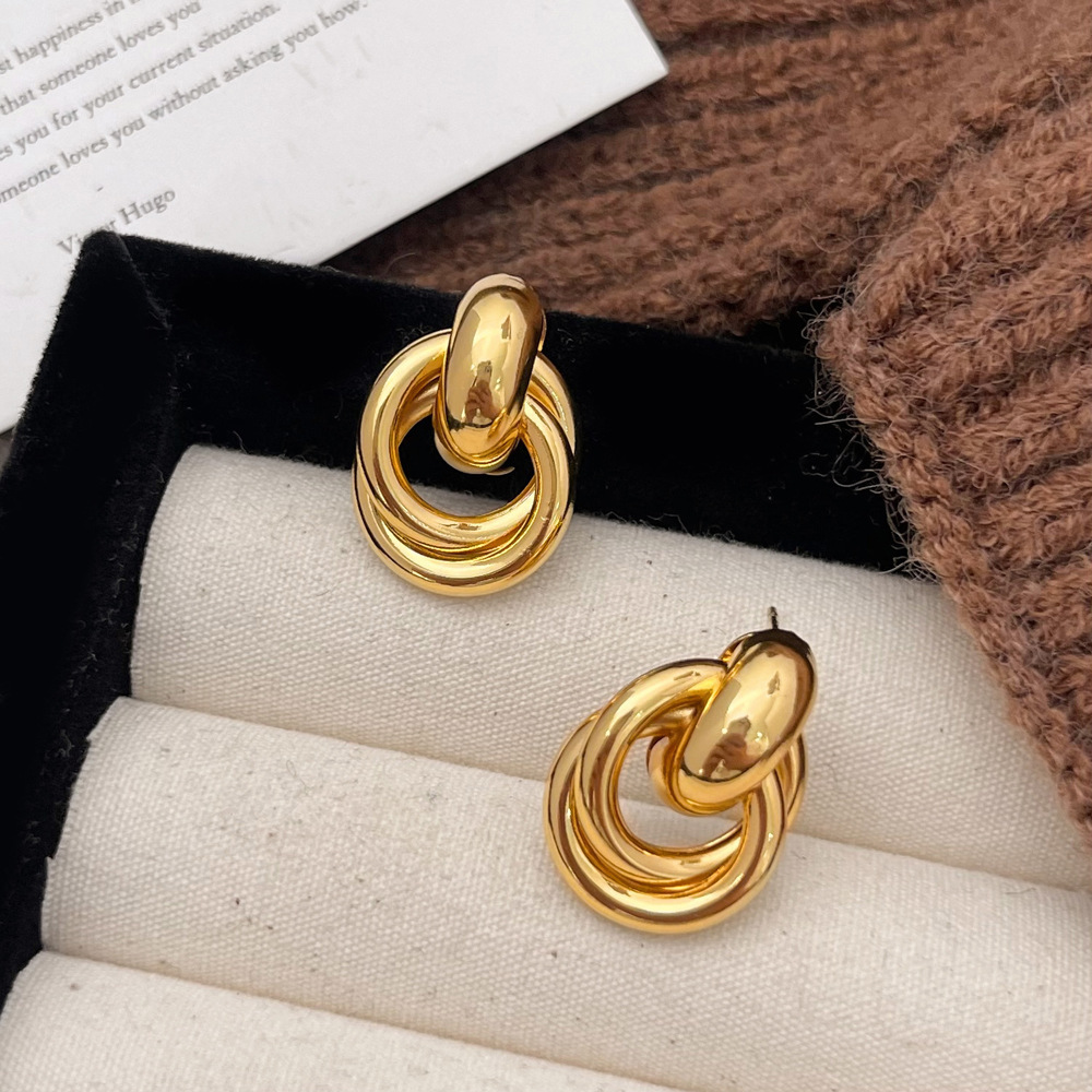 クロスボーダーイヤリングヨーロッパとアメリカのファッションレトロイヤリングテクスチャ二層金属巻きイヤリングイヤリング工場直接供給卸売