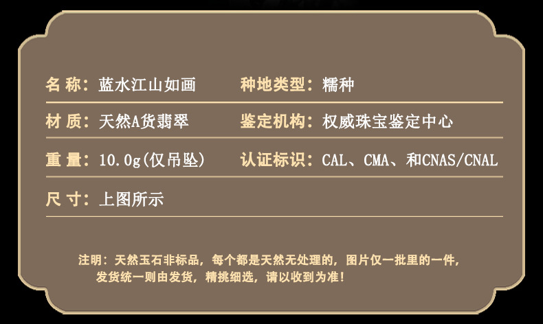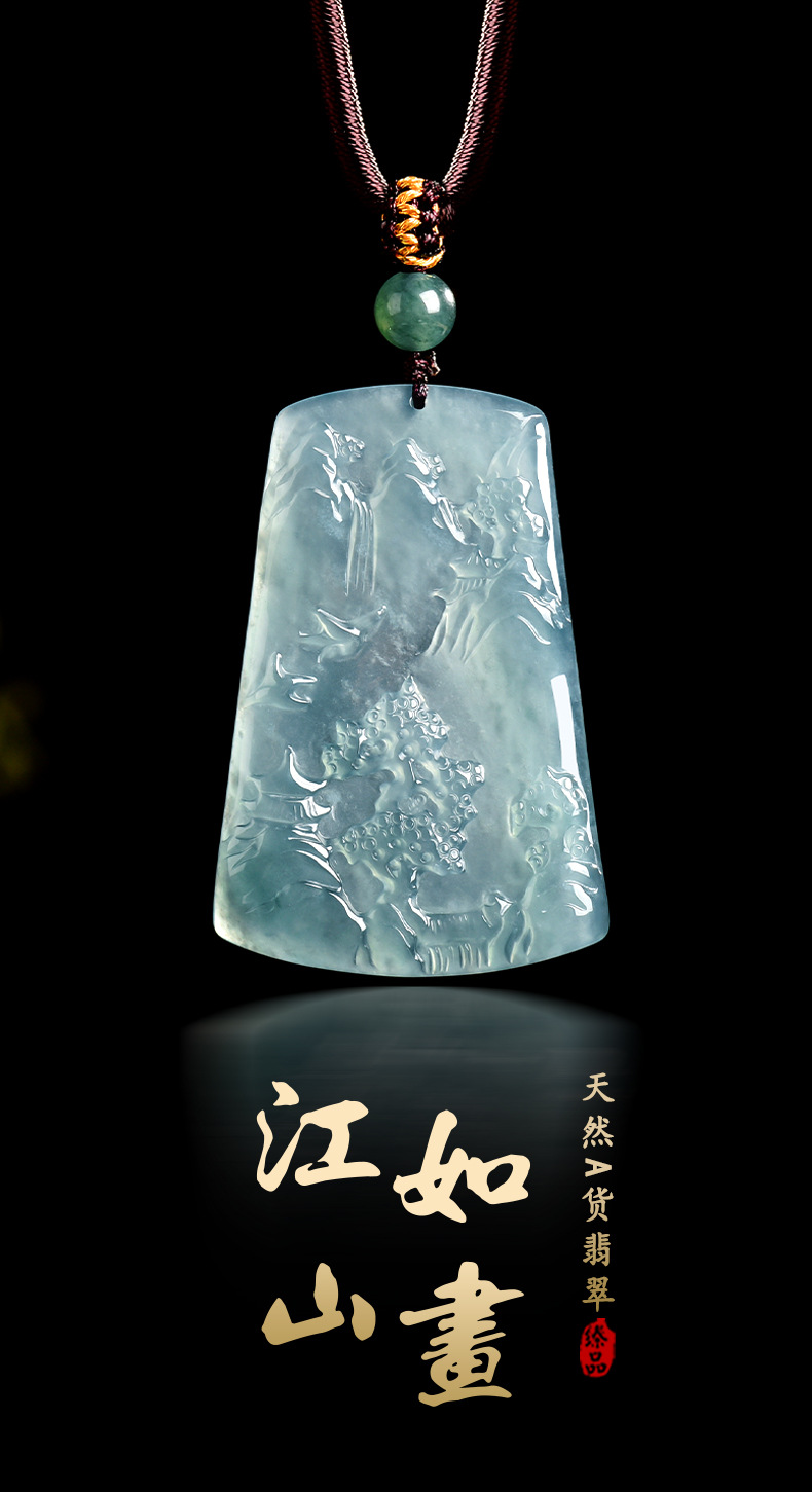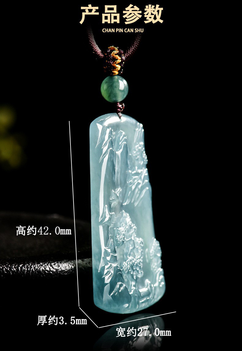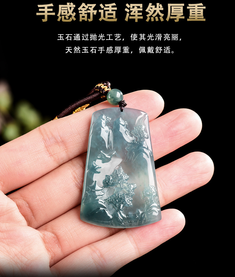 高档天然a货翡翠蓝水山水牌吊坠意境冰糯种玉石挂件男女款玉坠