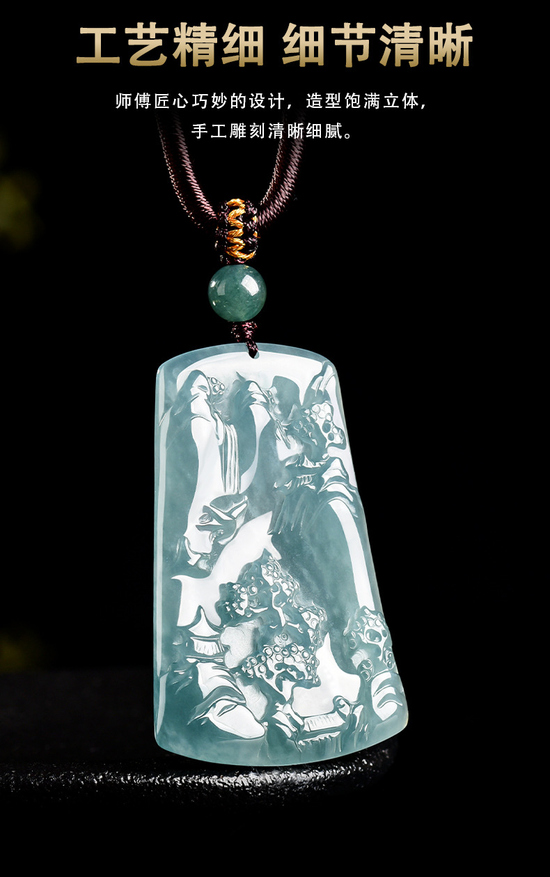 天然Aグレード翡翠ブルーウォーター富の神ペンダント富氷種翡翠ペンダント男性と女性用翡翠ペンダント四会翡翠卸売