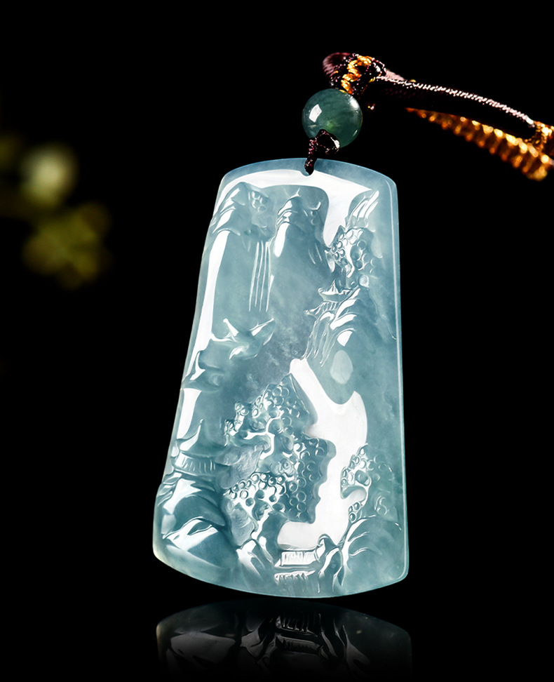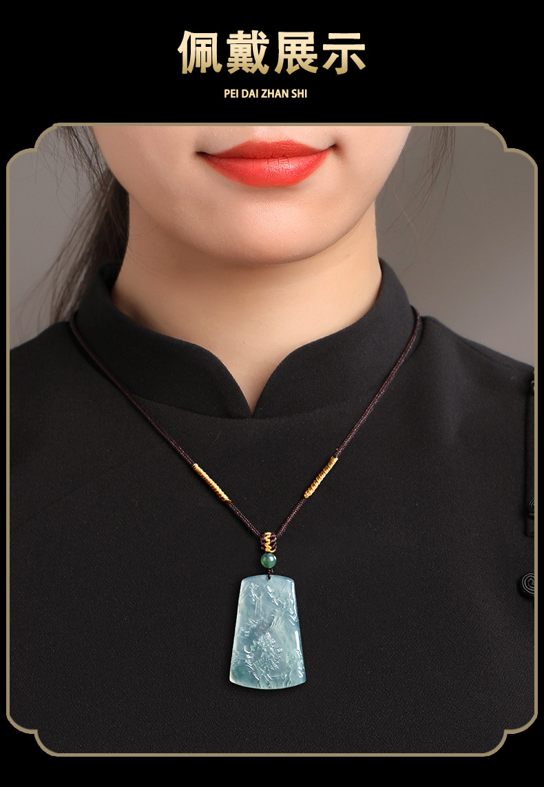 高級天然Aグレード翡翠ブルーウォータースケープペンダント、アイスワックス種翡翠ペンダント、男女兼用翡翠ペンダント