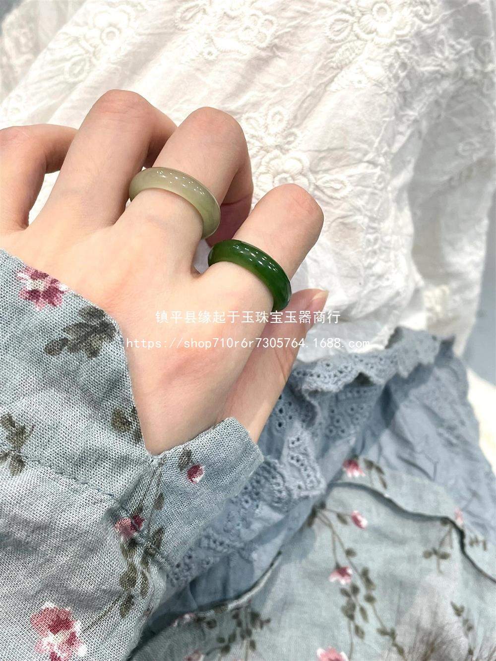 青白翡翠晴水指輪天然古材ホータン翡翠無地指輪氷種翡翠指輪女性用シンプル古代風ギフト