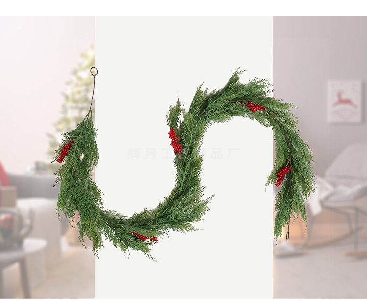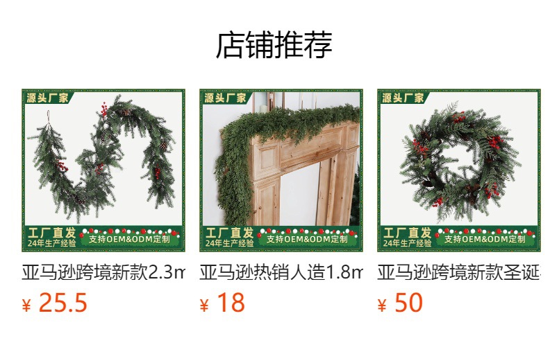 亚马逊仿真圆松针圣诞藤条人造圣诞节圆松柏仿真植物配件装饰花环