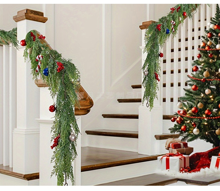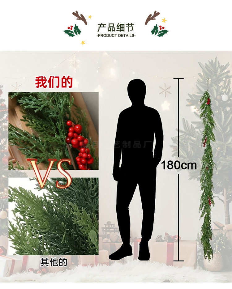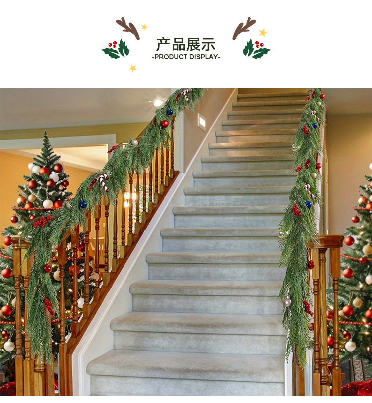 渝溪跨境圣诞节诺福克松藤条PE手感料软胶餐桌装饰品楼梯挂饰门挂