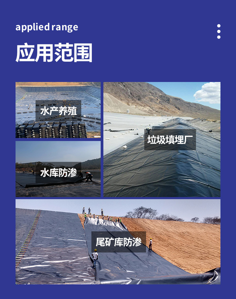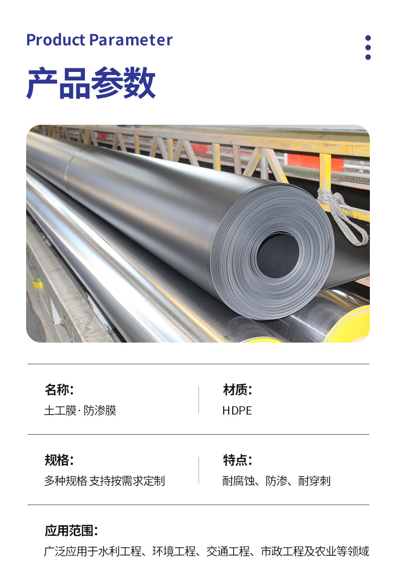 hdpe土工膜防渗膜厂家复合膜光面人工湖填埋场高密度聚乙烯土工膜