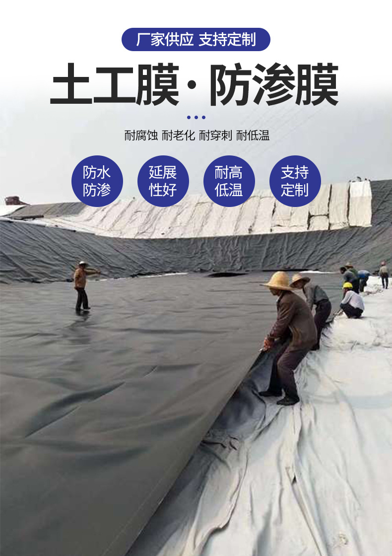 土工膜垃圾填埋场沼气池河道人工湖鱼塘养殖防渗水土工膜加工