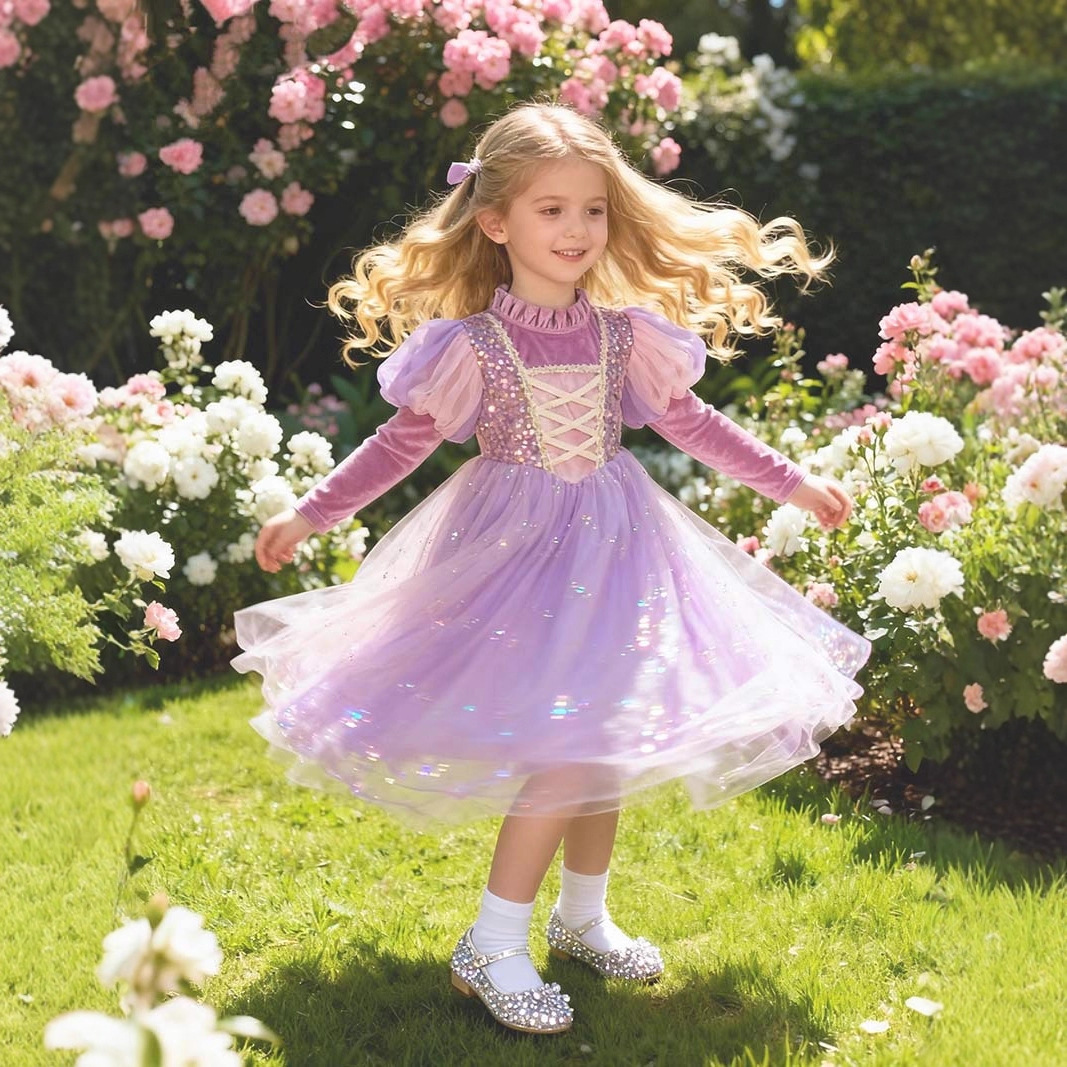 儿童长发公主裙春秋小女孩高端生日蓬蓬裙女童艾莎礼服裙莉娅公主