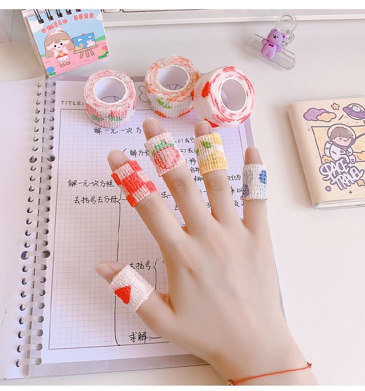 指の包帯の指の自己接着包帯の学生は字の果物のシリーズの指のテープを書いて繭の保護カバーを研ぎ始めます。