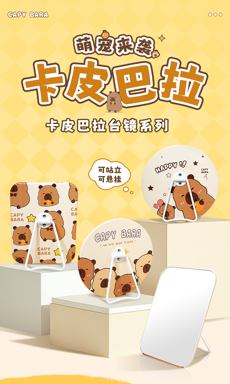 卓上カピバラ IP スタイル スクエア卓上ミラー ラウンド壁掛け折りたたみ化粧鏡 女性専用 シンプル