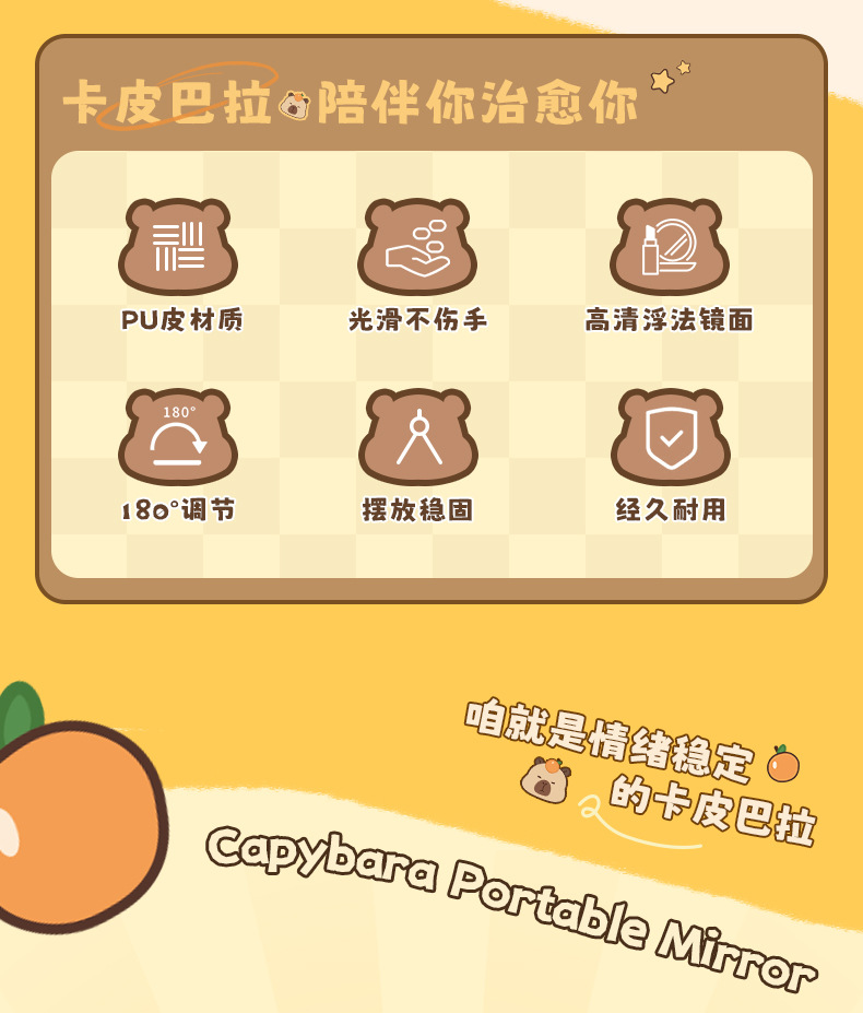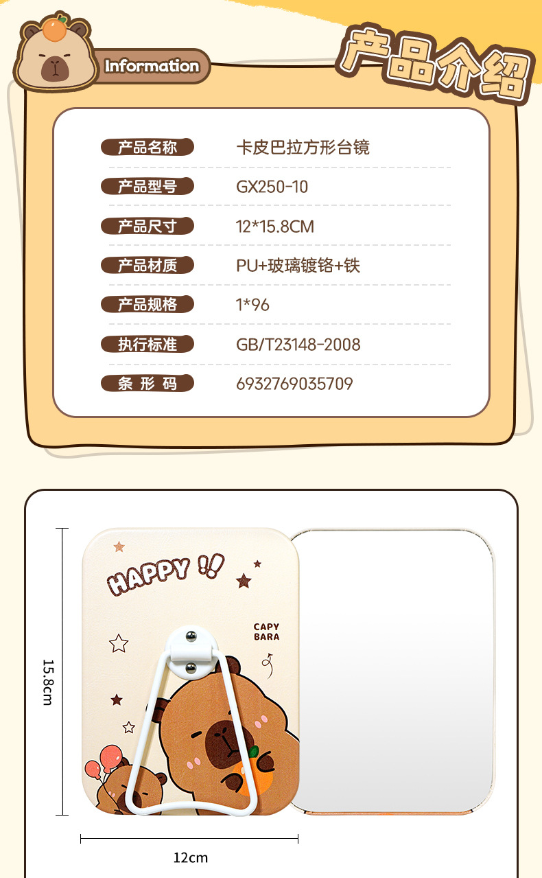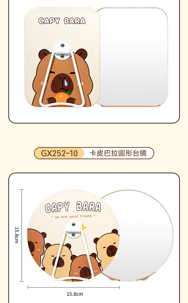 商品番号 GX250-10 カピバラ角卓上ミラー、GX252-10 カピバラ丸卓上ミラー