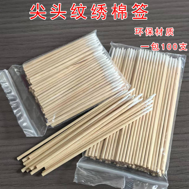 移植されたつけまつげ、小さなヘッド綿棒、先のとがった木目調刺繍、先のとがった小さな綿棒、細いヘッドメイクアップクリーニング綿棒