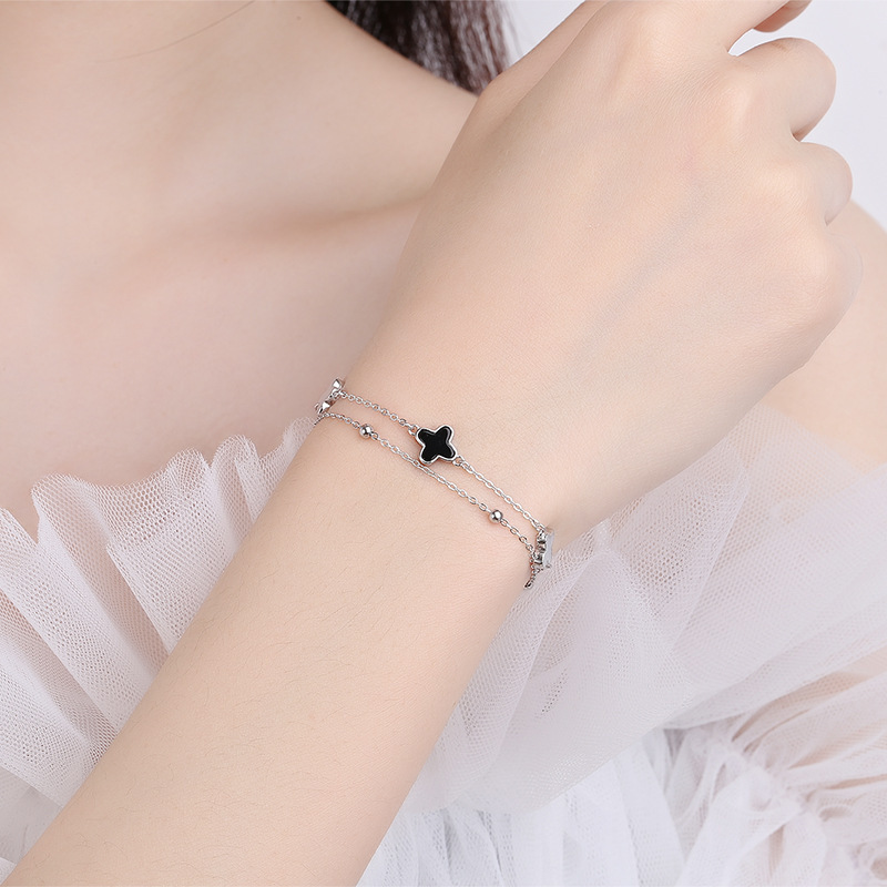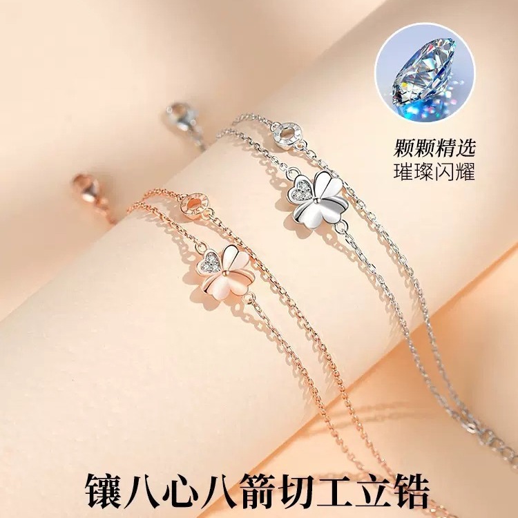 ライトラグジュアリーハイエンド愛の四つ葉のクローバージルコンブレスレット女性の四つ葉のクローバー二層ブレスレットニッチデザインハンドジュエリー