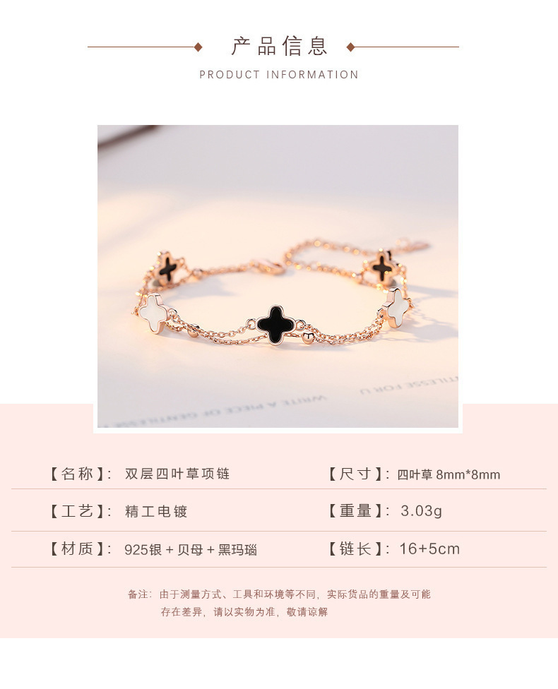S925純銀四葉草二重鎖女シンプルで贅沢な小衆デザイン高級感誕生日プレゼントは彼女に贈る