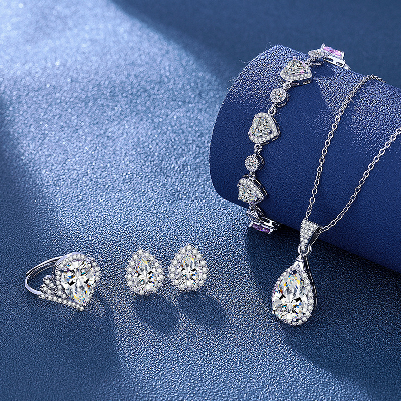 跨境热卖5克拉高碳钻水滴形吊坠 甜美优雅锁骨项链戒指手链四套装