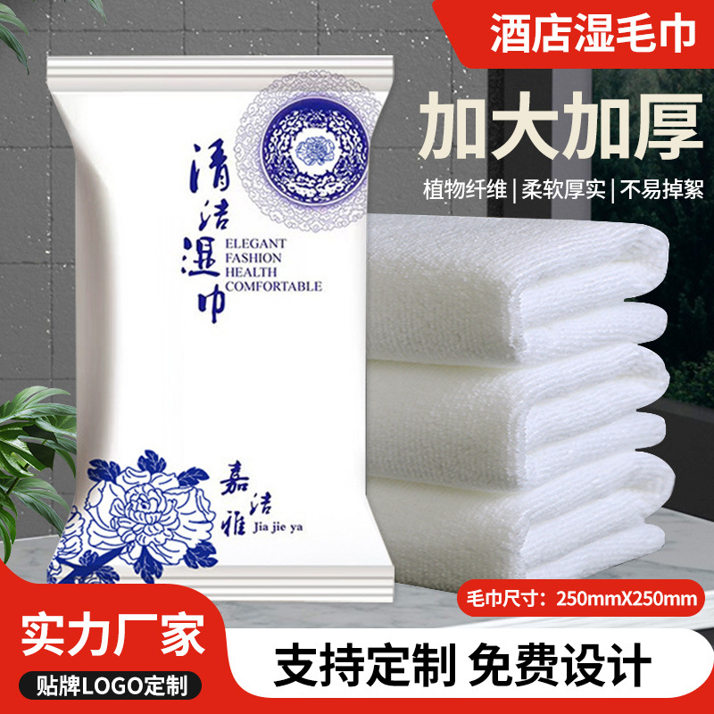 使い捨てウェットタオルホテル清潔ウェットタオル飲食用独立包装厚いウェットタオルカスタムロゴ