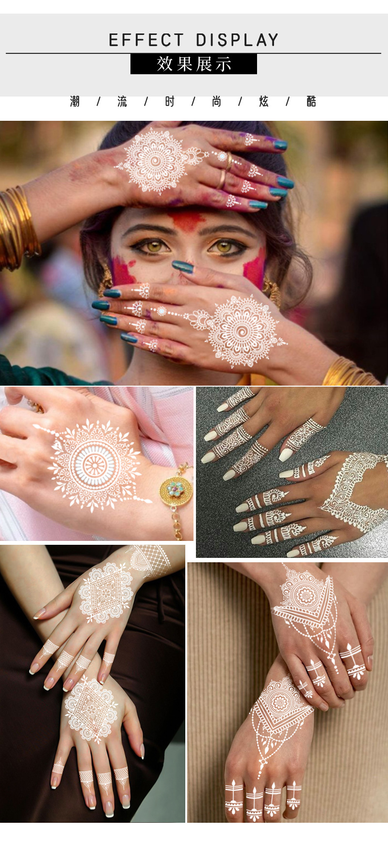 Amazon ホット推奨結婚式ホワイトレースヘナタトゥーステッカーヘナタトゥースポットホワイトレースタトゥーステッカー