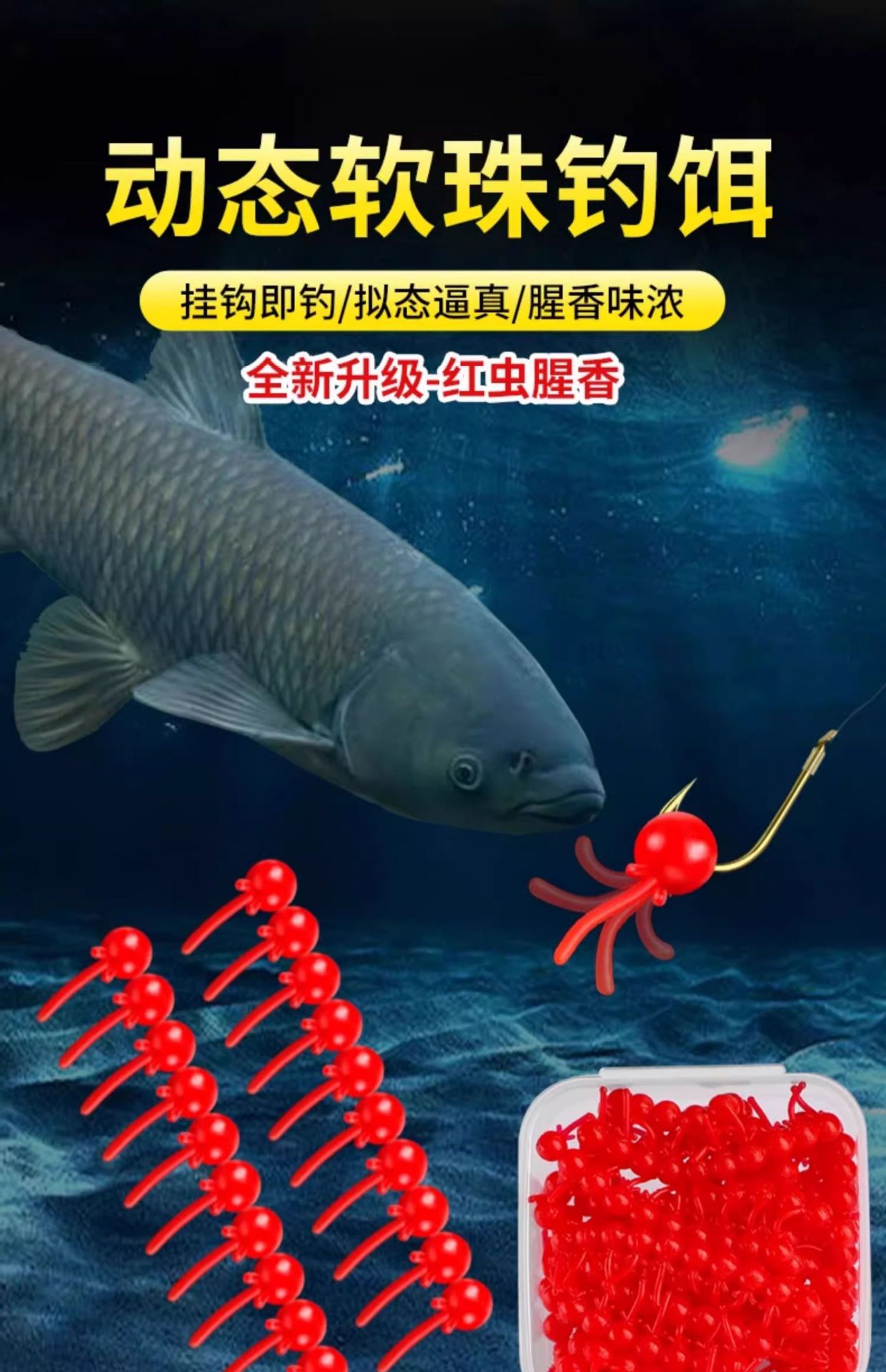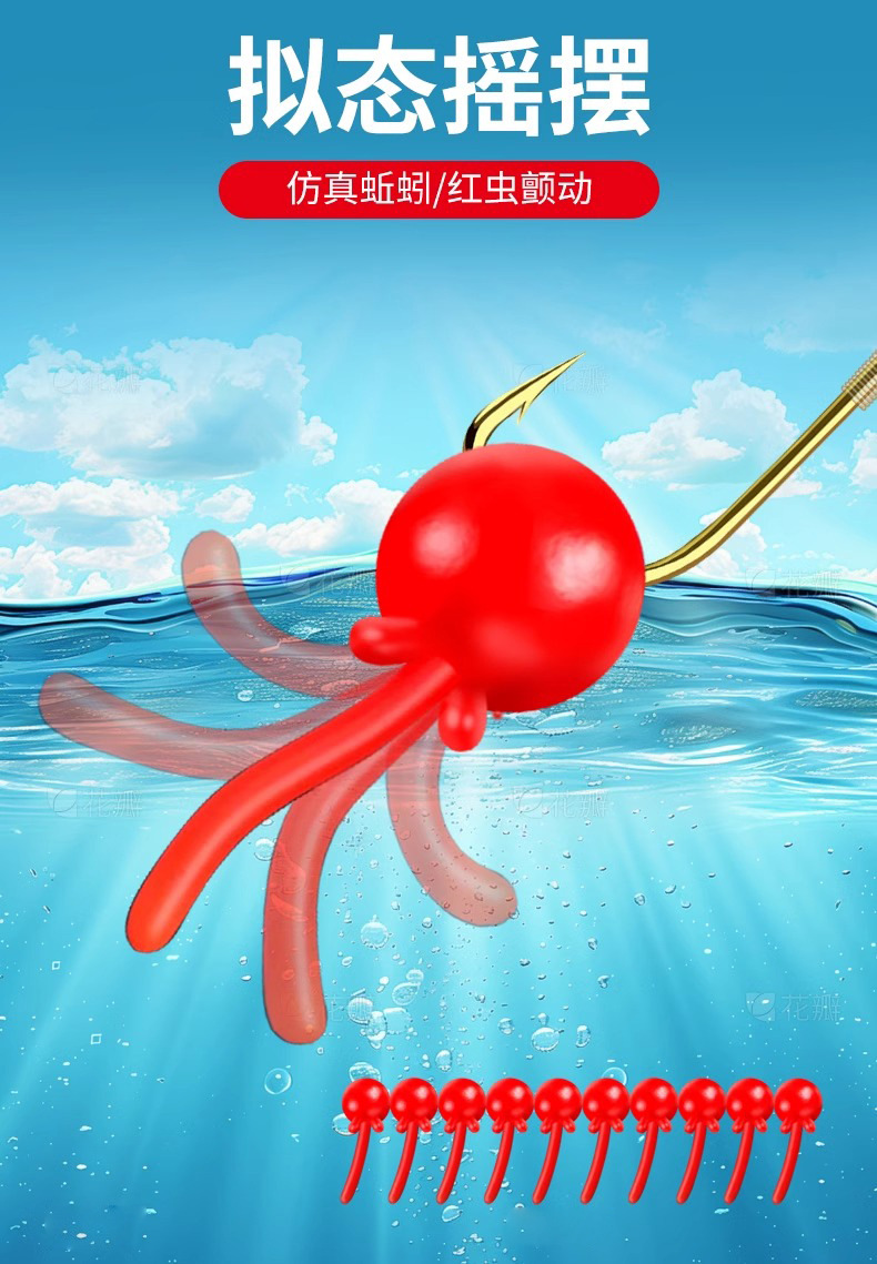 动态软珠蛆虫浮水假饵仿真路滑球球逗钓鲫鱼鲤鱼蚯蚓红虫腥味软饵