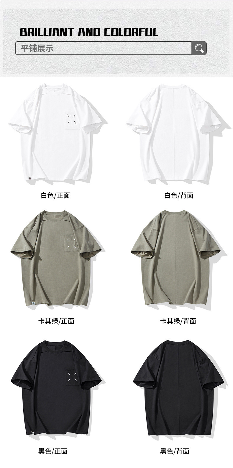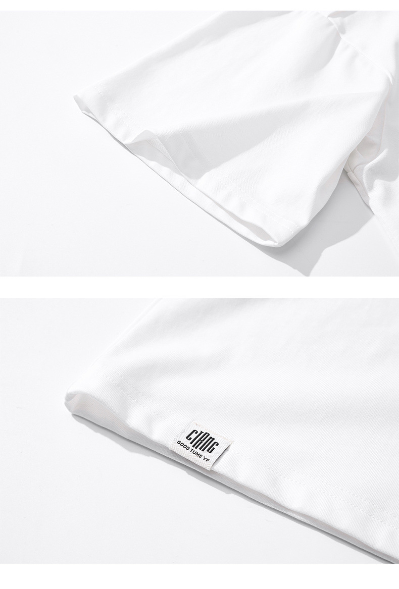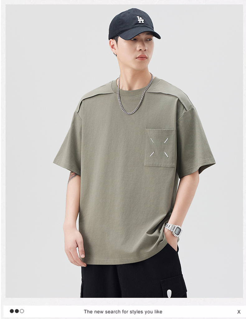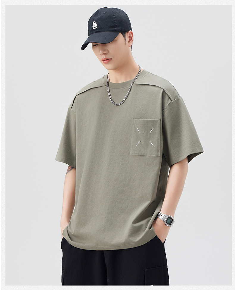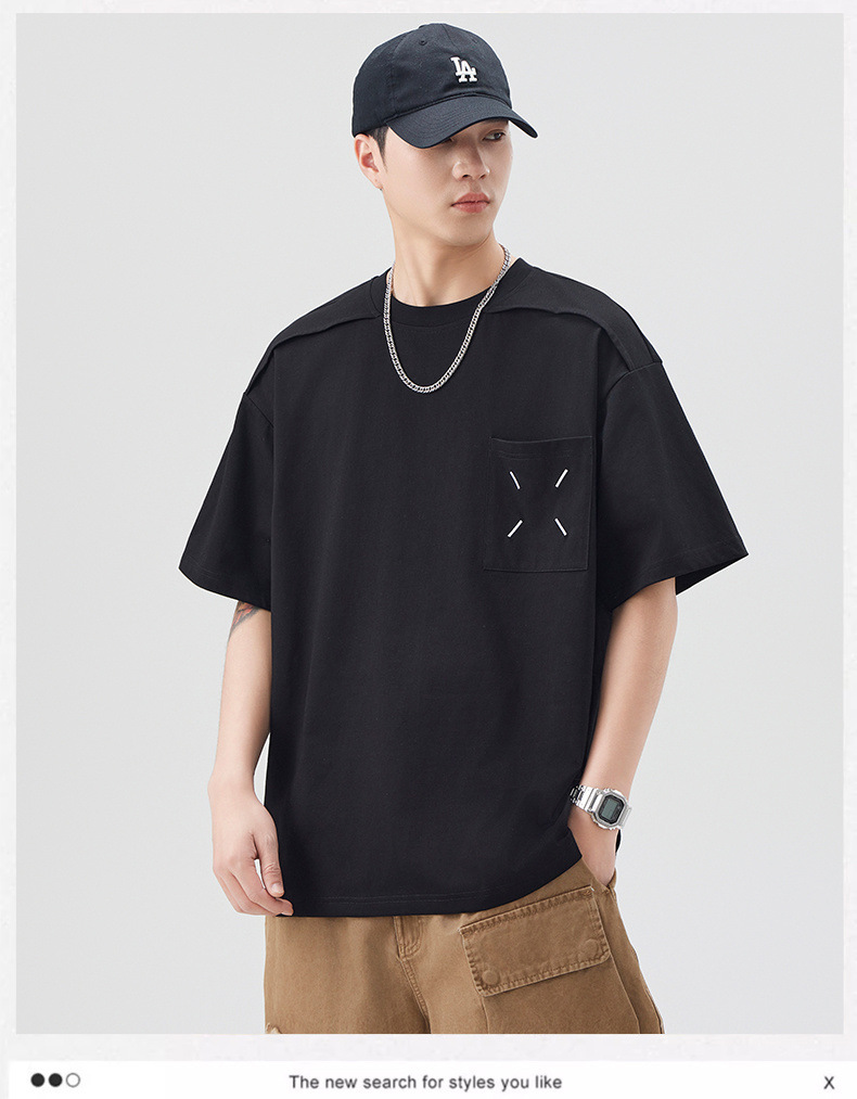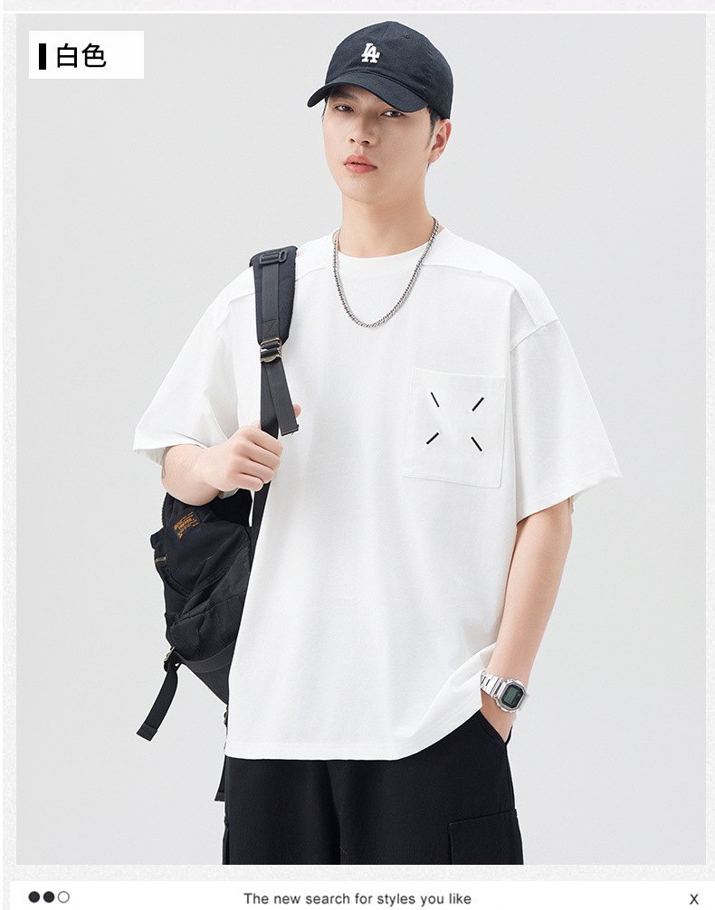 新品夏季潮牌纯色拼接T恤短袖男宽松舒适百搭休闲潮流港风上衣男