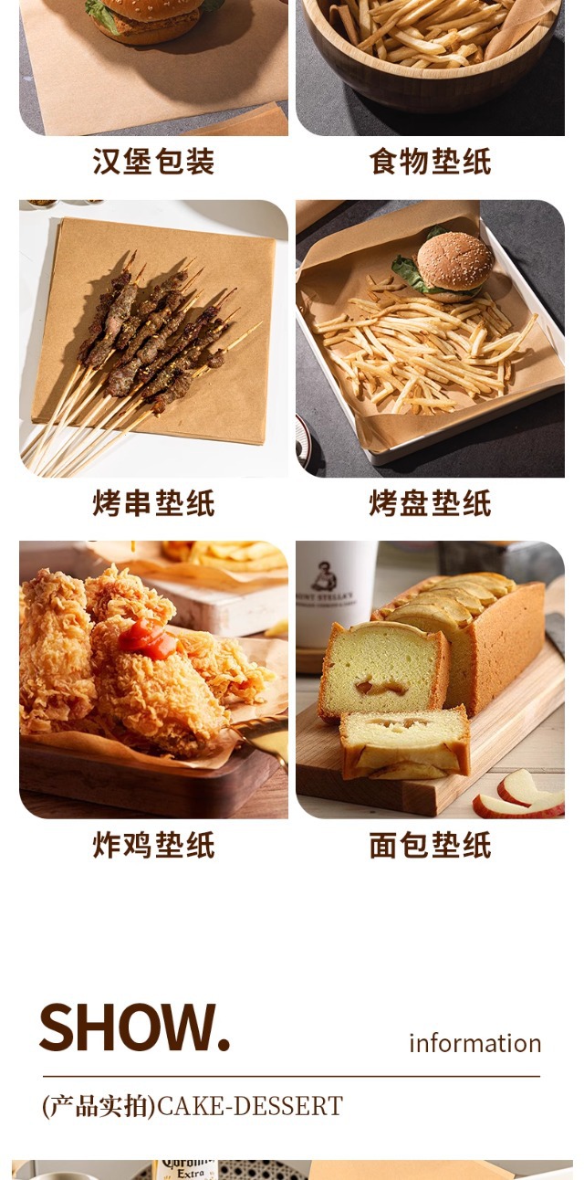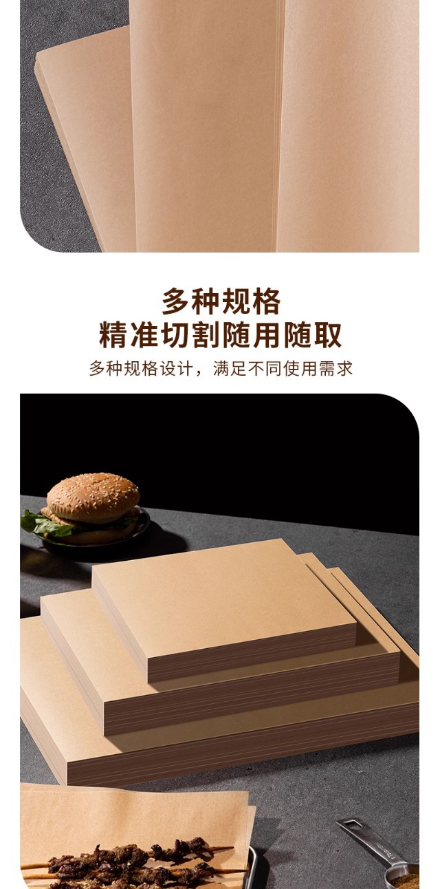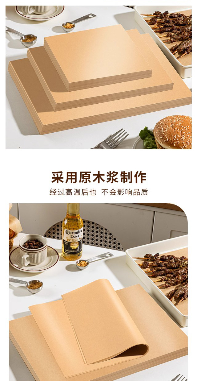 本色方形烧烤纸垫盘烘焙吸油纸烤盘纸食品垫纸商用烤箱油炸隔油纸