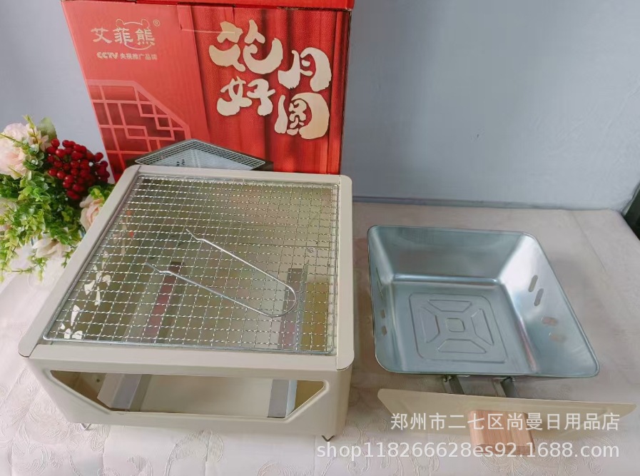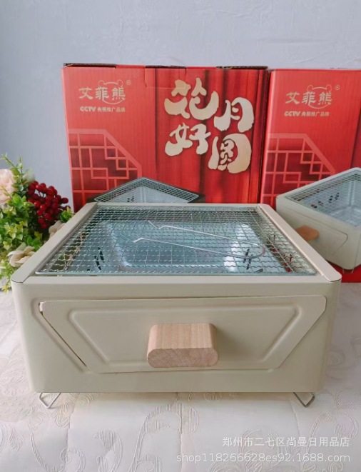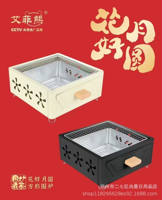 Effie Bear Huahao フルムーンスクエア炭火焼きストーブ 31 センチメートルポータブルバーベキューグリルスクエア中庭冬暖房ストーブ