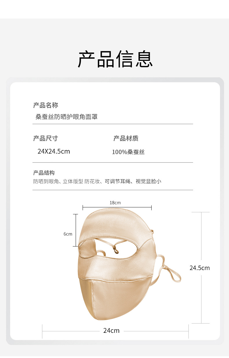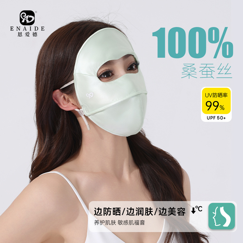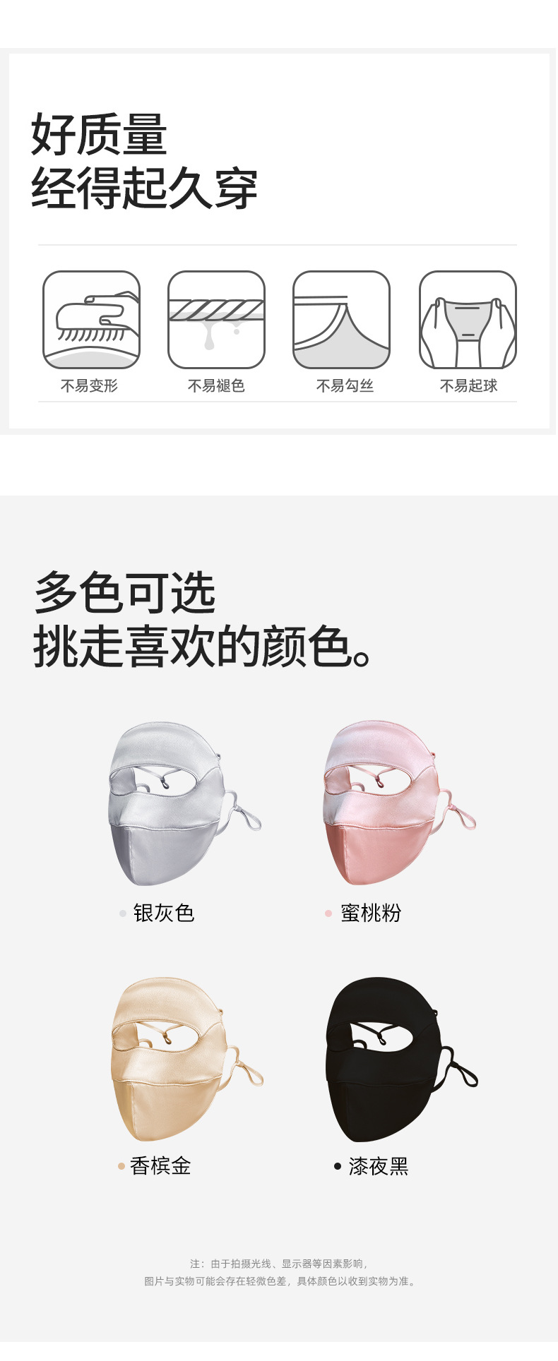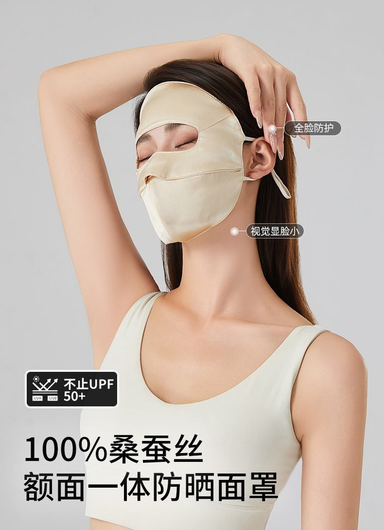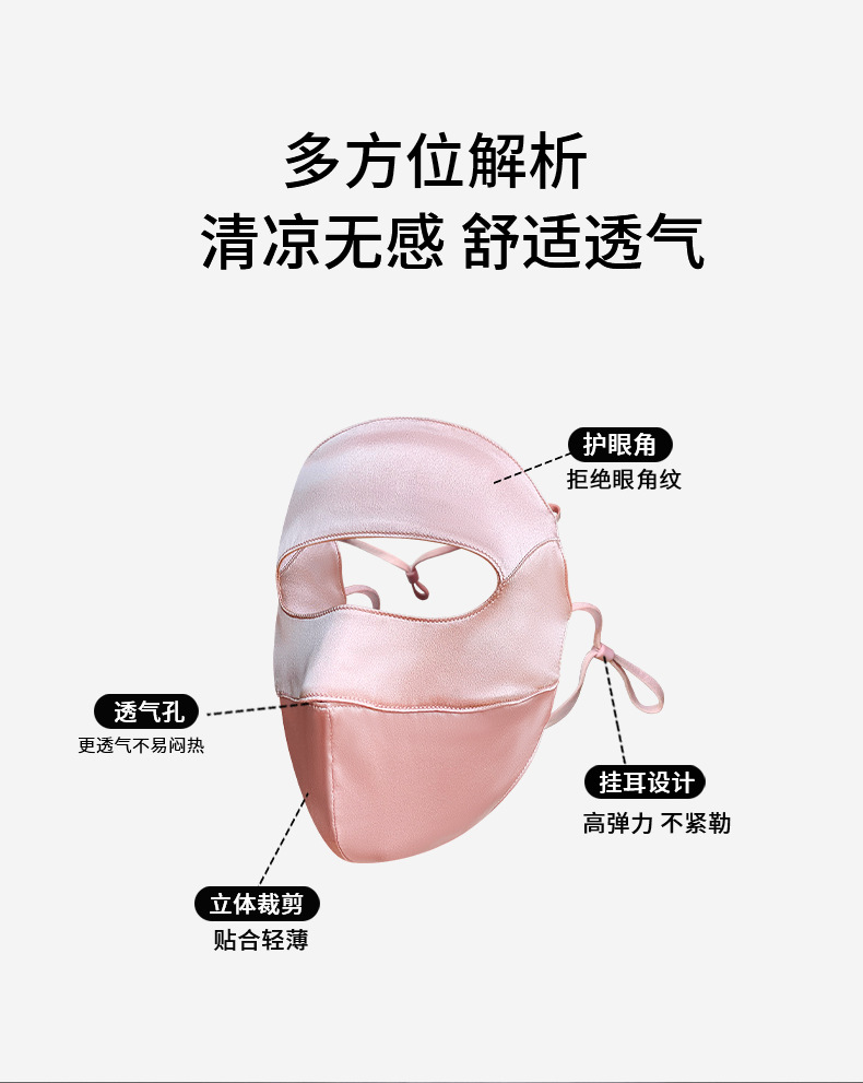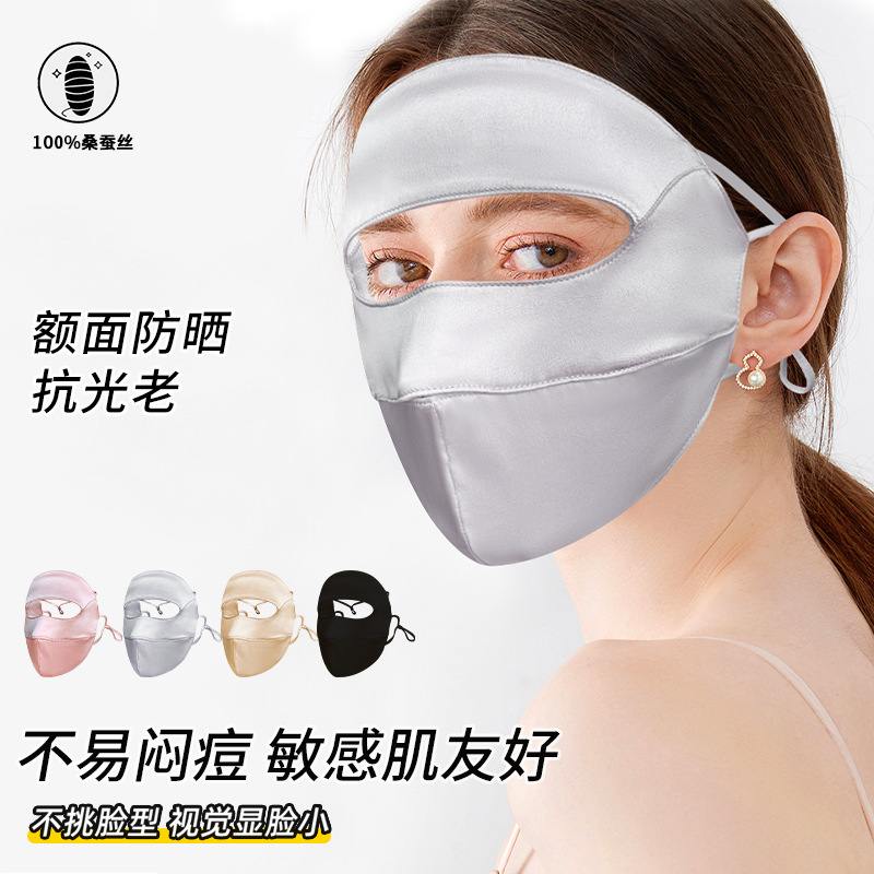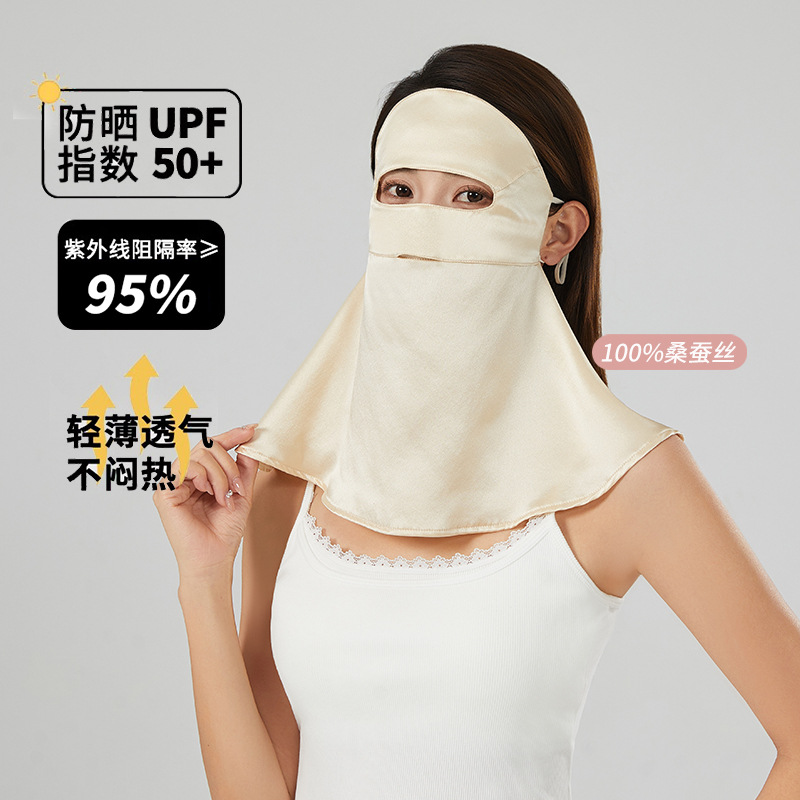 高乐捷真丝防晒面罩女桑蚕丝口罩透气遮阳遮全脸防紫外线护眼角薄