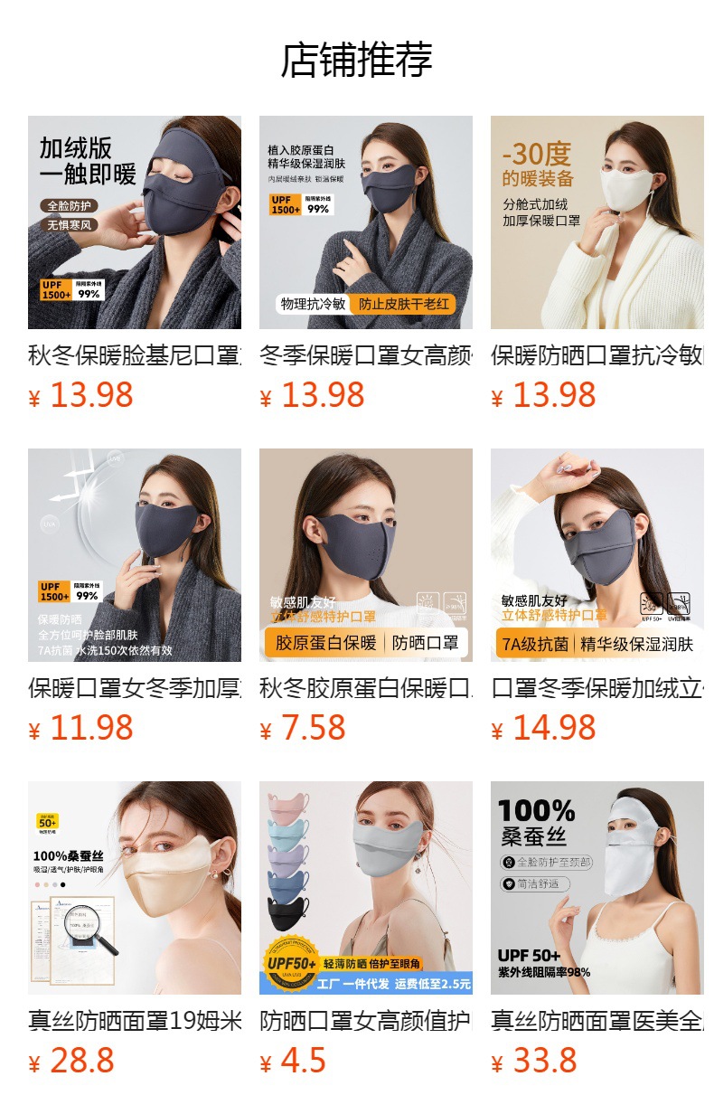秋冬保温マスク女性高颜値加毛日焼け止め防寒通気立体コラーゲン美ラードマスク男