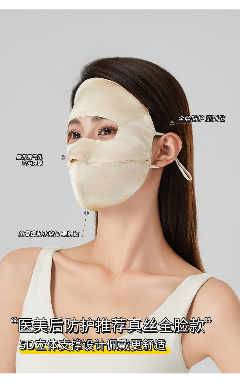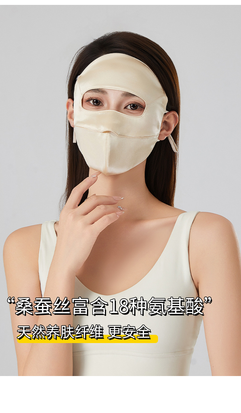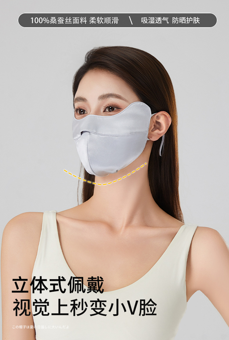 シルク日焼け止めマスク全顔マスク紫外線防止保温100% 绢糸女性医美養肌顔ジニ