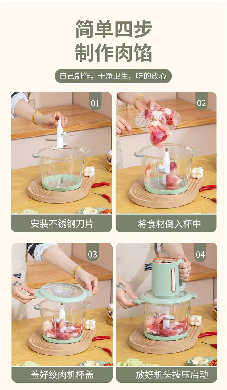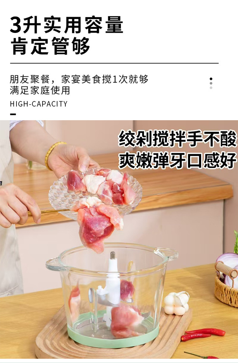厂家现货不锈钢玻璃料理打肉器绞肉机碎肉机绞馅机家用多功能打蒜