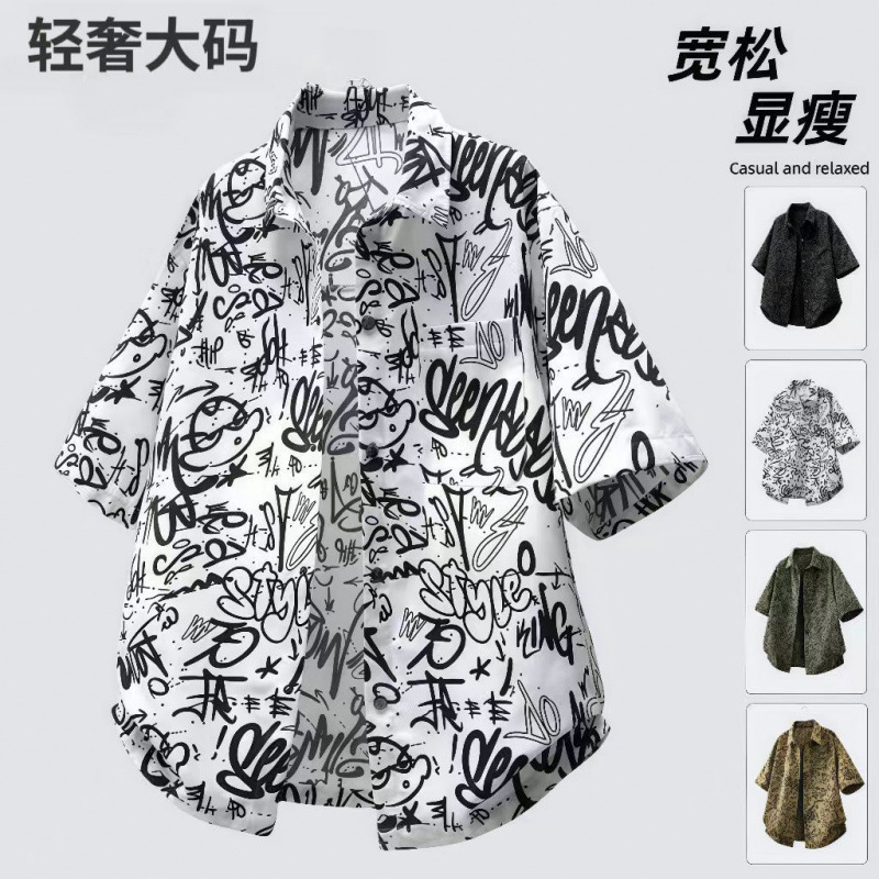 厂家直销加肥加大码衬衫男短袖潮时尚半袖衬衣大码设计感复古上衣