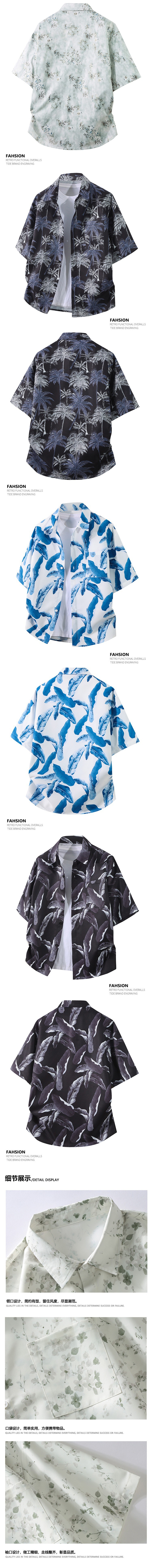 M-8XL 新款夏季胖子大码防晒衣男翻领衬衫领潮牌花色户外轻薄透气