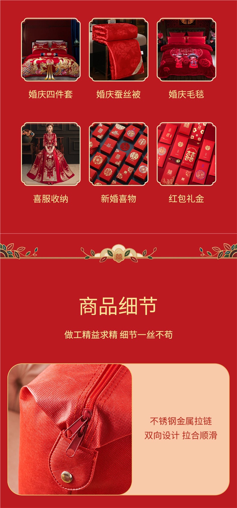 ウェディングキルト、ウェディングバッグ、ウェディング包装袋、キルトカバー用不織布収納袋、持参金用ポータブルレッドバッグ