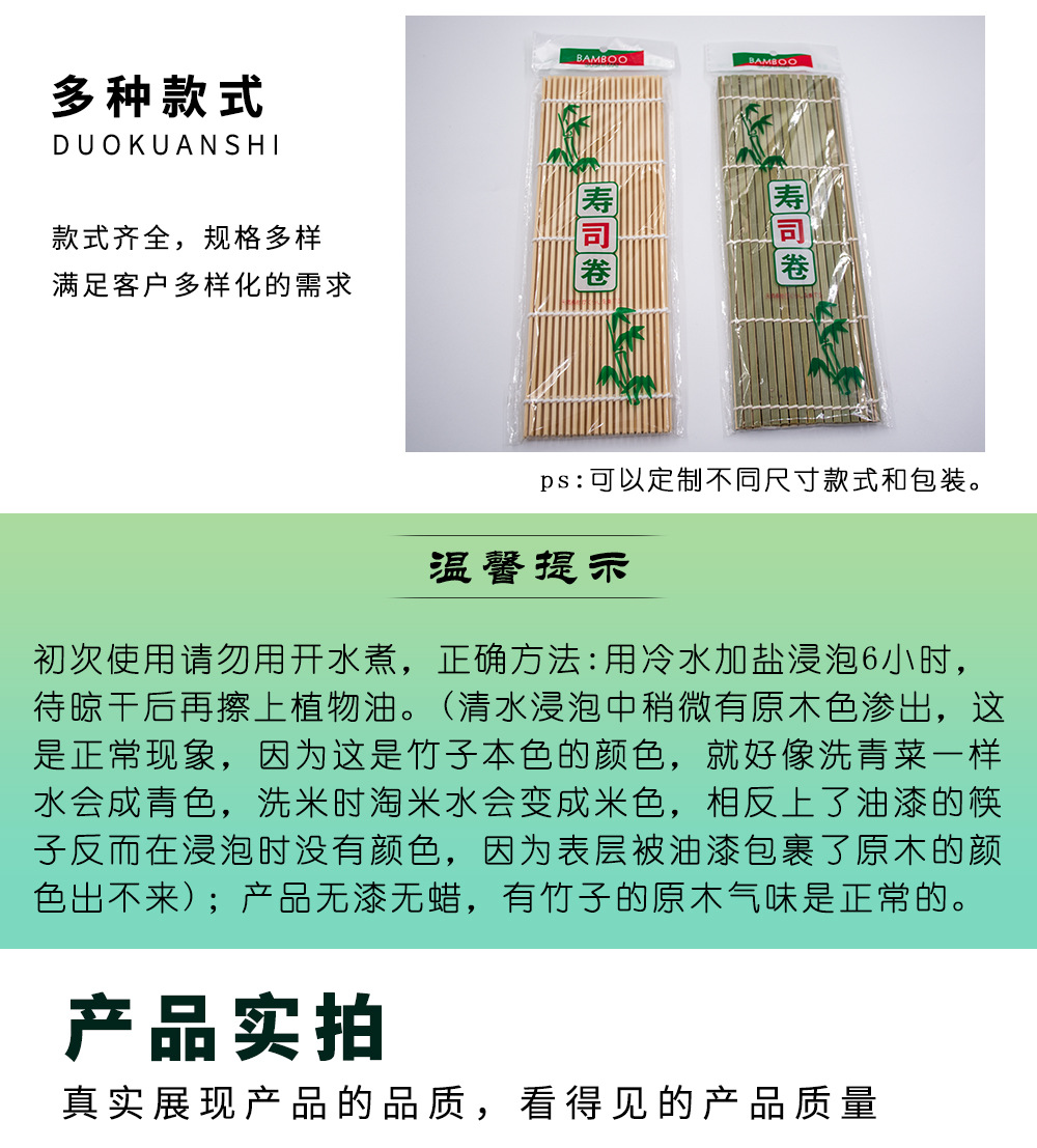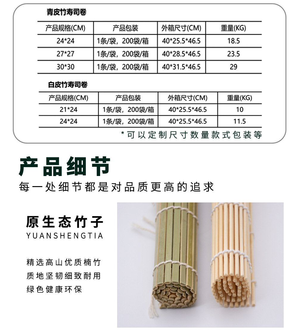 トップ竹製青皮/白皮寿司ロールカーテン手作り寿司巻き道具日本式くっつかない台所用品卸売り