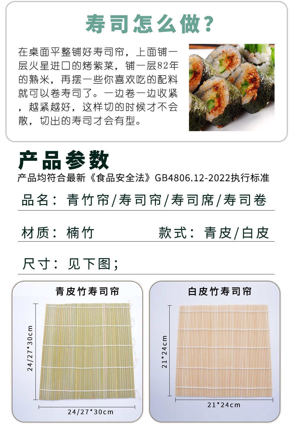 厂家直供寿司卷帘青皮竹帘做寿司紫菜包饭工具竹餐具日料工具批发