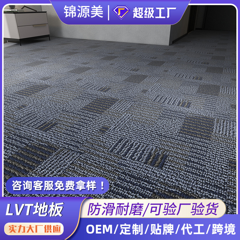 PVCプラスチックドライバックフロア革防水滑り止め商用家庭用カーペット柄LVT自己接着シート材は耐摩耗性を厚くする