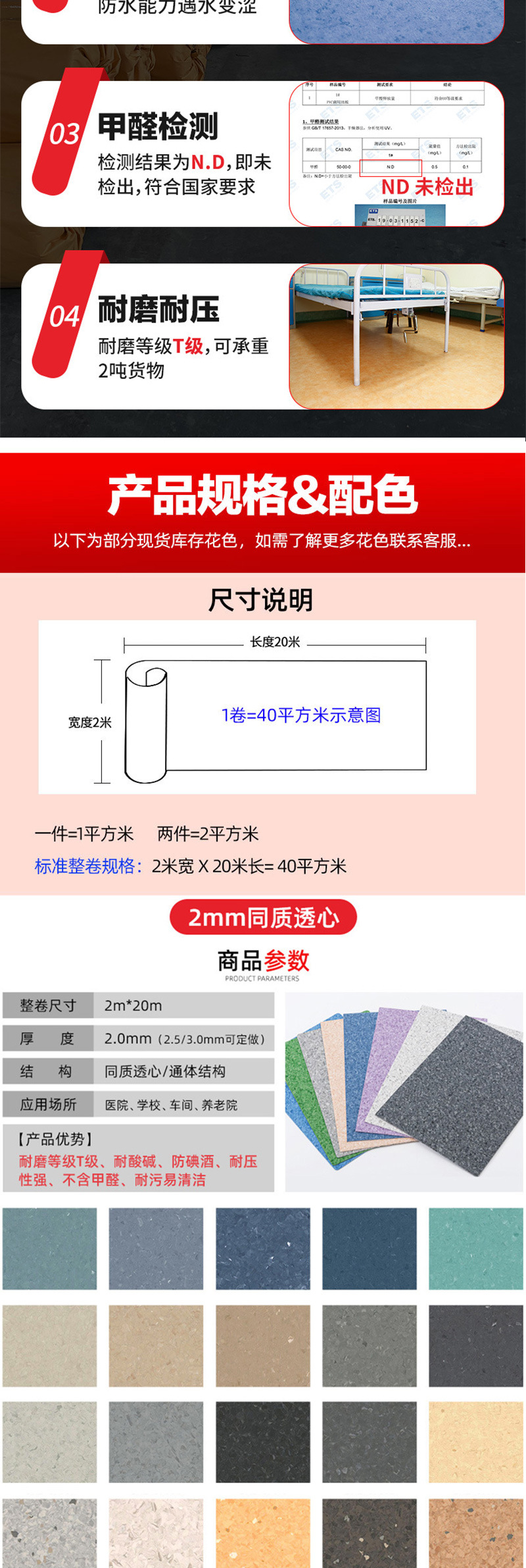 医院学校疗养院防滑防火霉T级耐磨地板革PVC地板地胶pvc塑胶地板