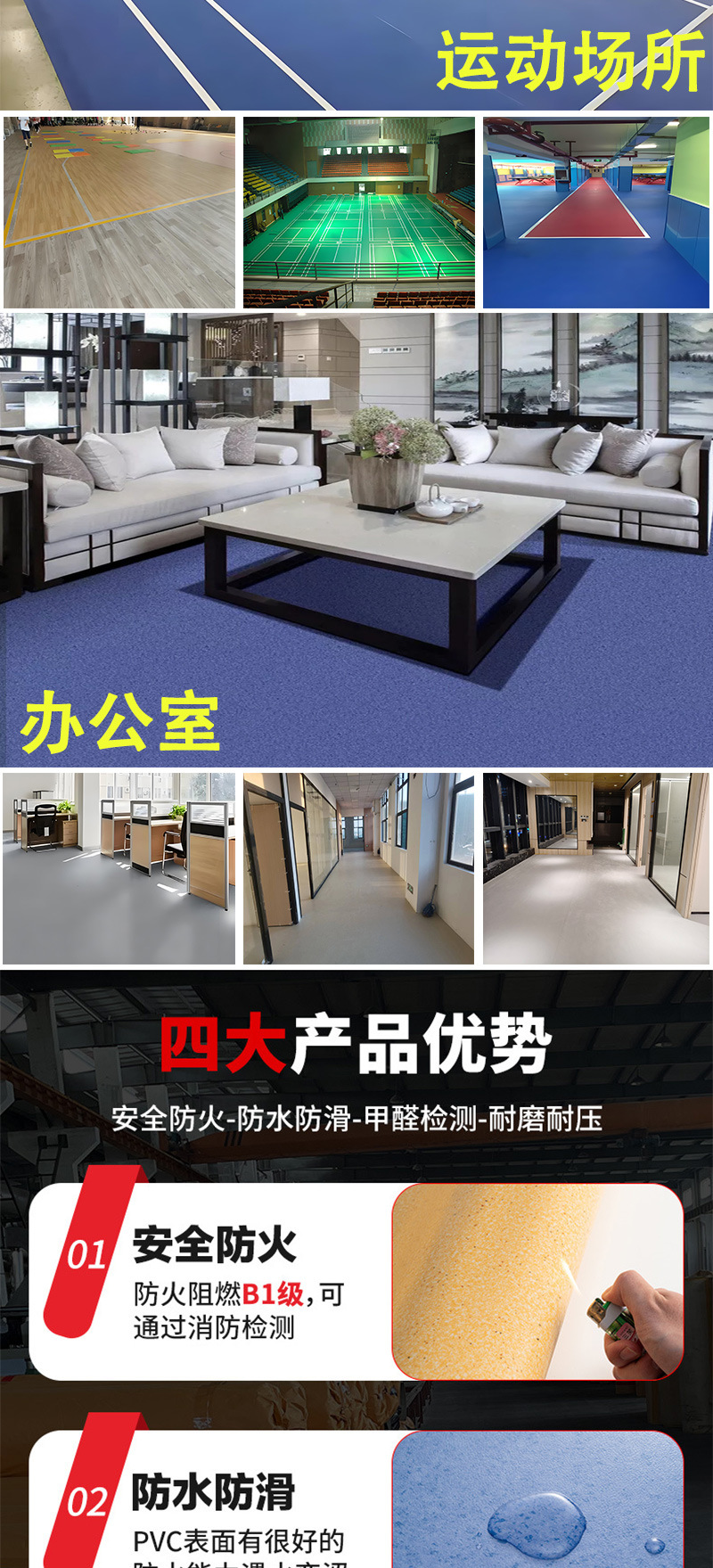 健身房幼儿园运动场所电梯地垫pvc地板地胶pvc塑胶地板