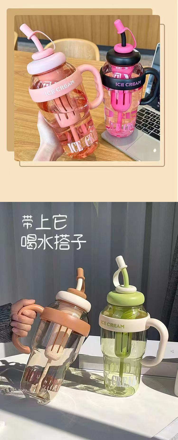 見た目の良い女の子向けの夏のアイスカップ、ビッグマックウォーターカップ、ストロー付きミルクティーカップ、茶こし付き、大容量プラスチックケトル