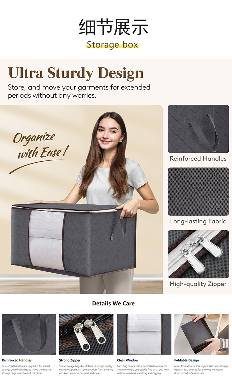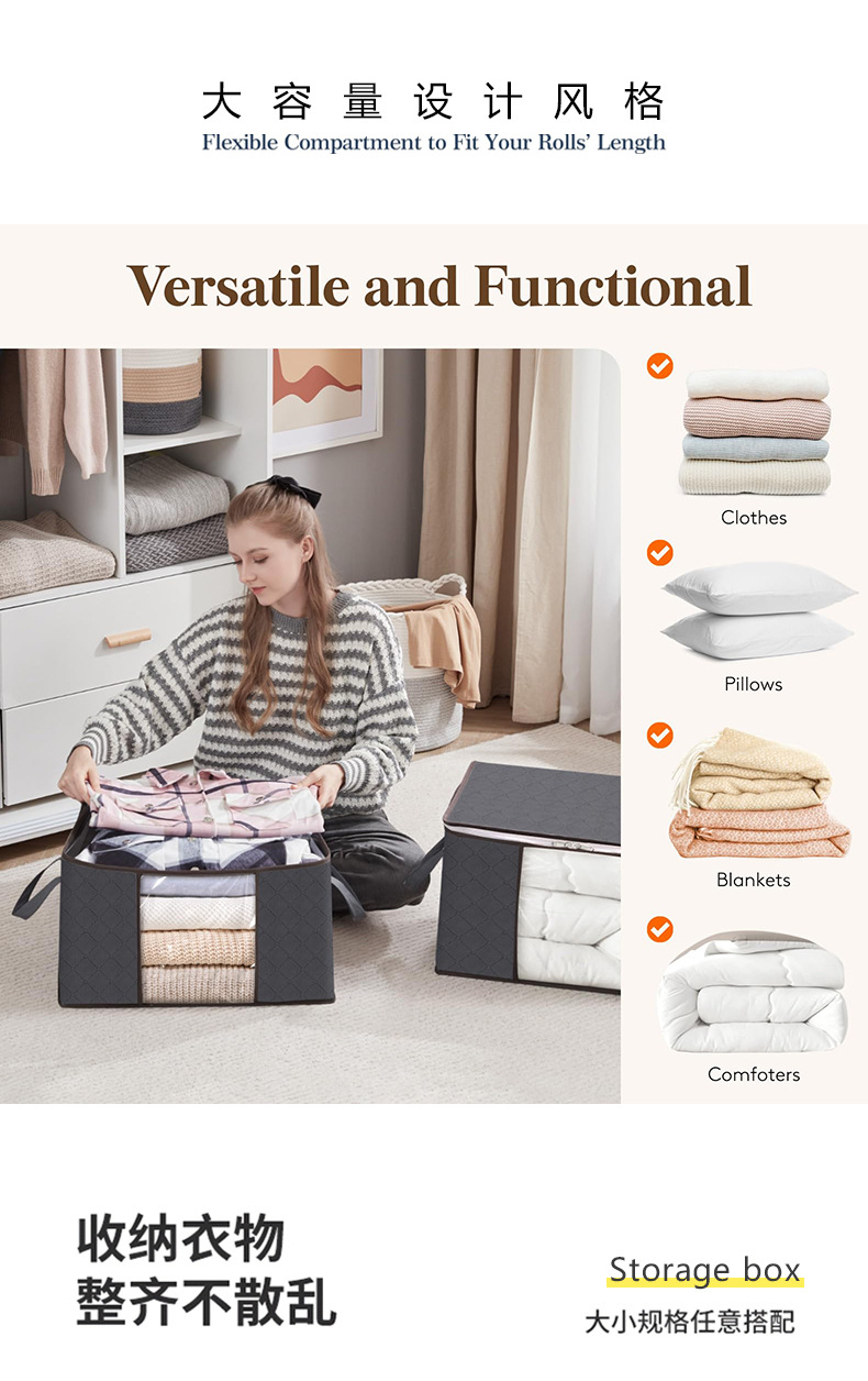 Amazonベストセラーオーガナイザーバッグ強化衣類収納バッグ特大容量衣類ブランケットキルト収納ボックス