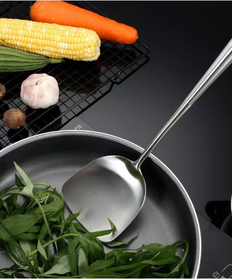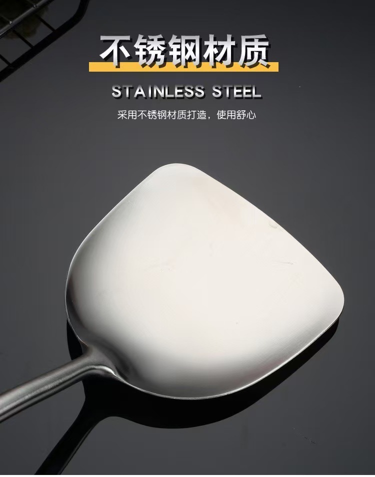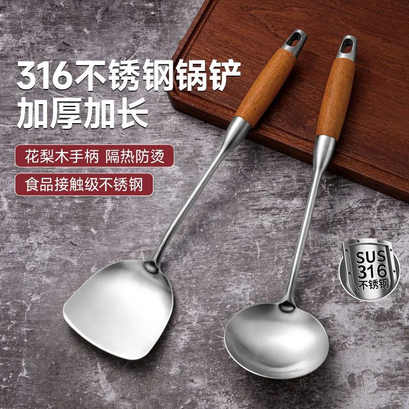 316ステンレス鍋シャベル食品級家庭用炒め物シャベル木柄シャベルスプーンセットを厚くします。