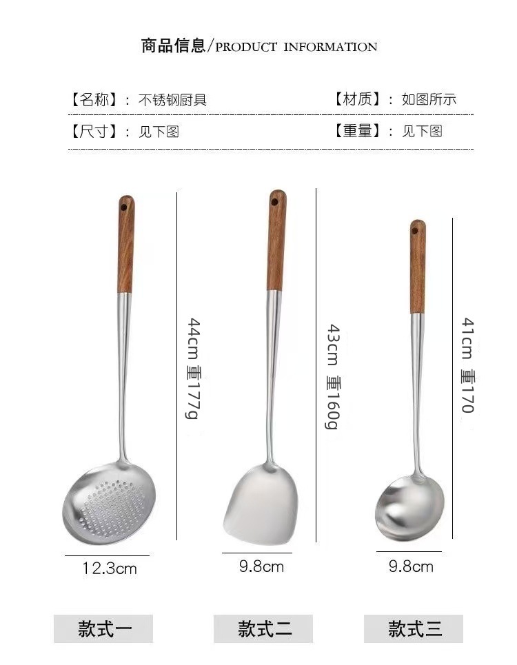 304ステンレス梨花木調理器具セット商用ホテルキッチン炒め物シャベルスプーンスプーンセット