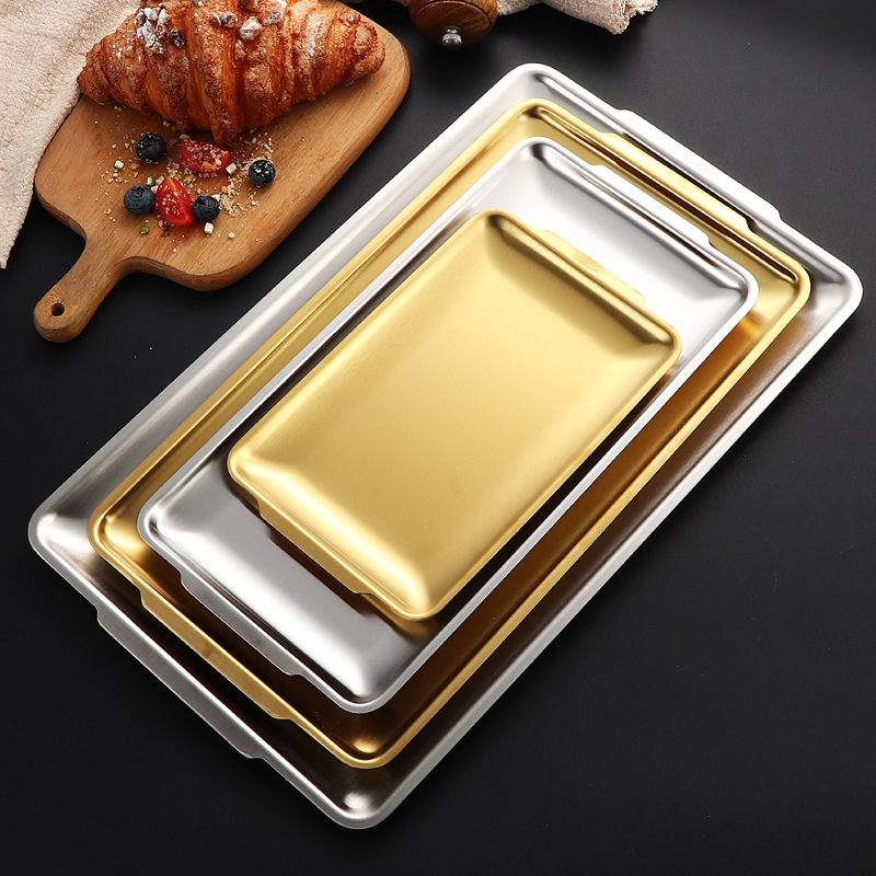 長方形 304 ステンレス鋼プレート韓国バーベキュープレートクリエイティブデザート平底寿司プレートトレイ収納プレート