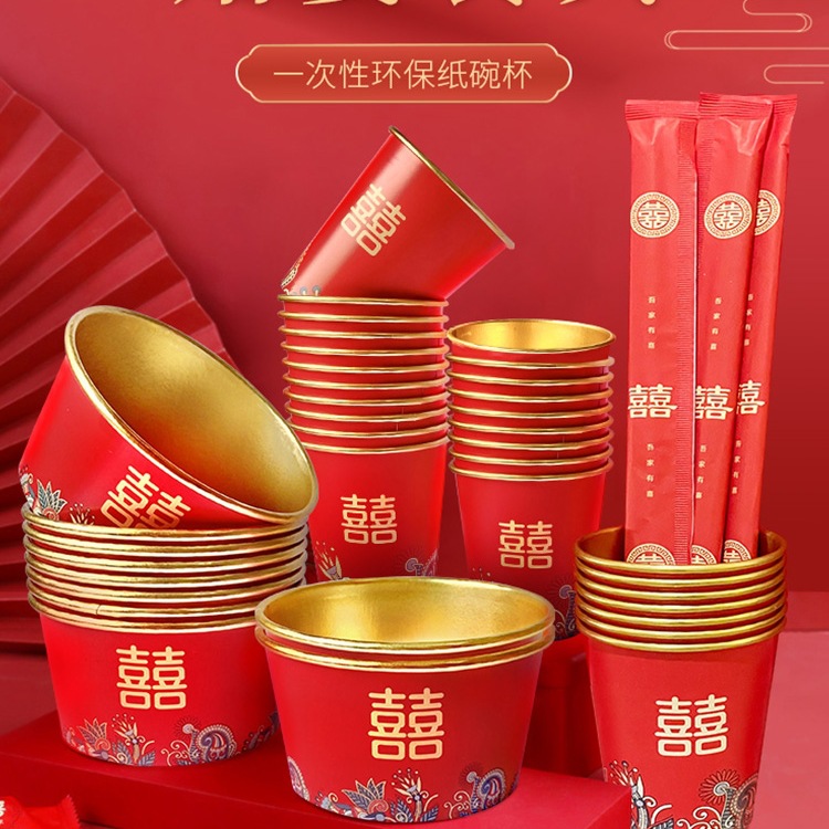 结婚用品大全结婚一次性纸碗纸杯筷子喜碗饭碗婚宴红色喜庆餐具