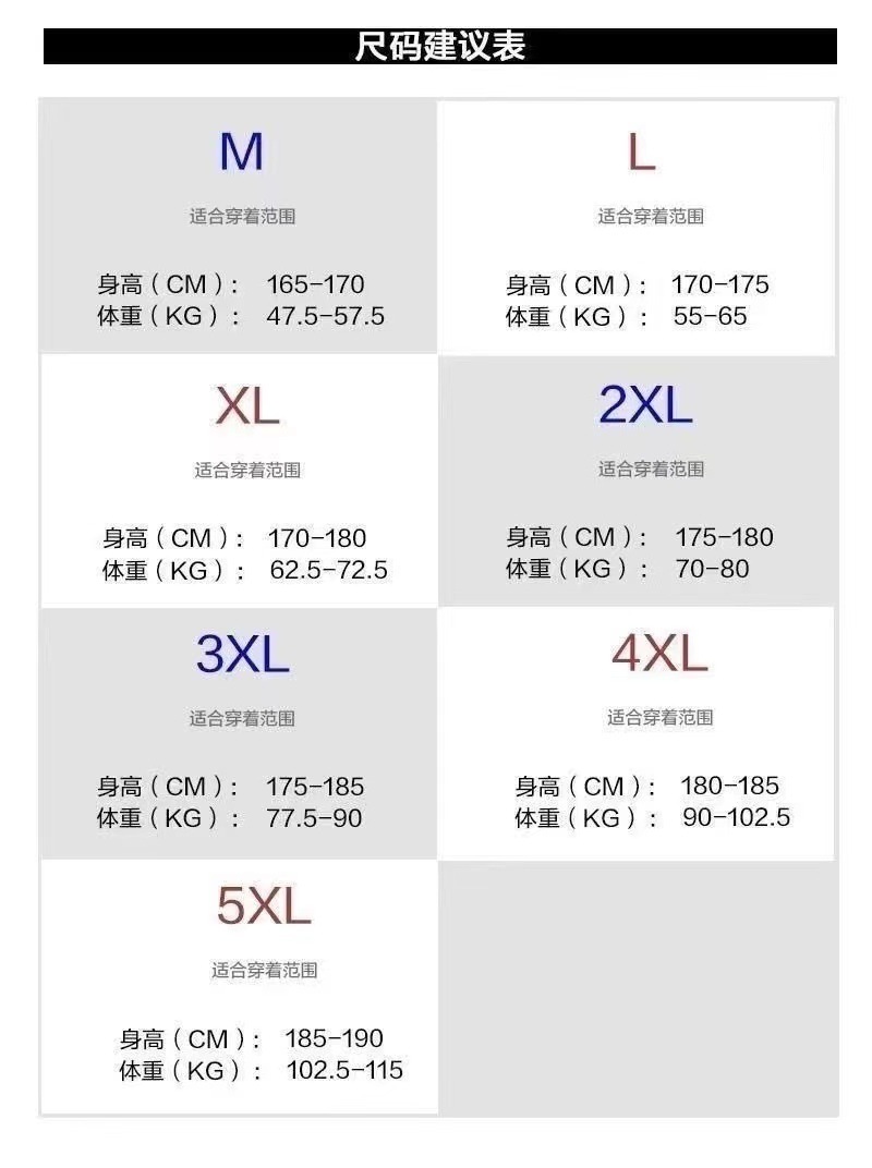 サイズ M (推奨 40-50kg),L (推奨 50-60kg),XL (推奨 60-67.5kg),2XL (67.5-75kg を推奨),3XL (推奨 75-85kg,4XL (85-95kg を推奨),5XL (95-110kg を推奨)