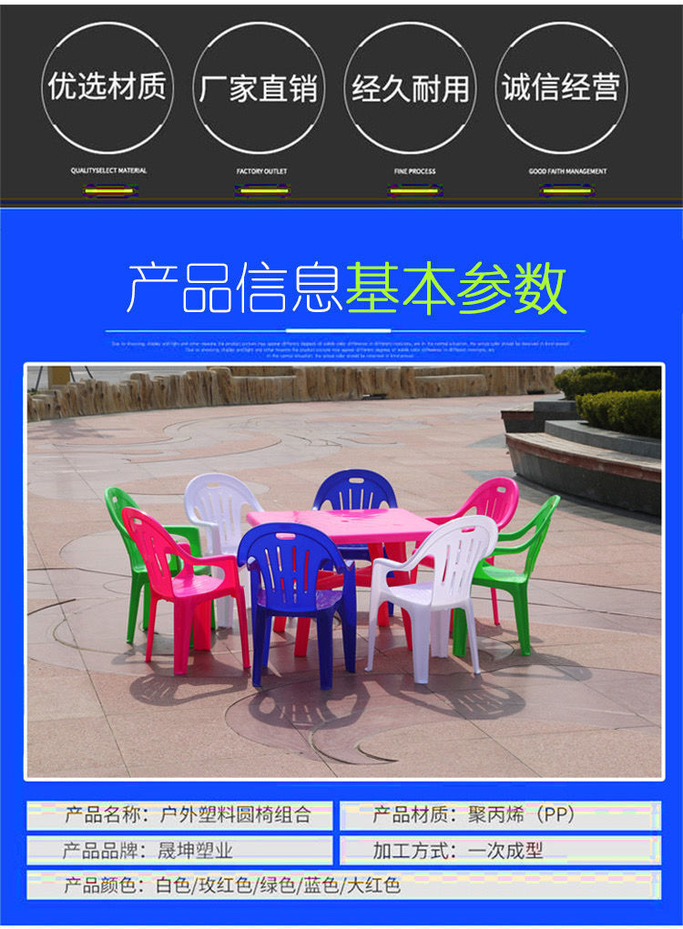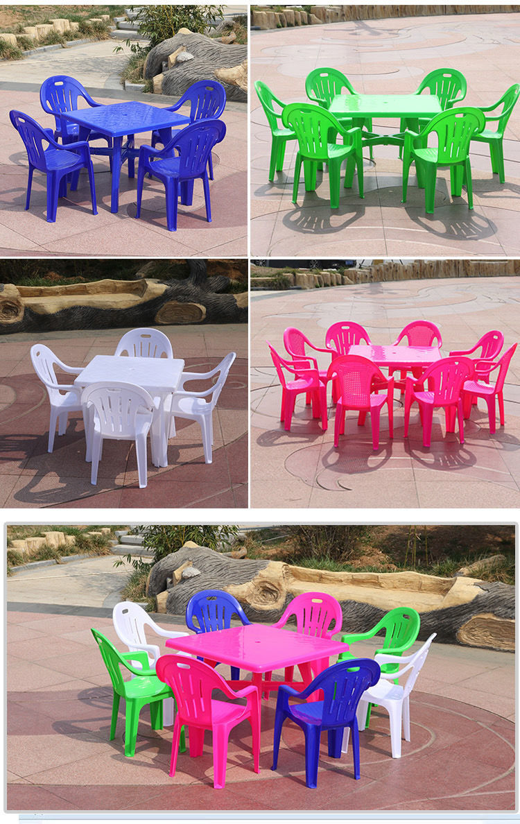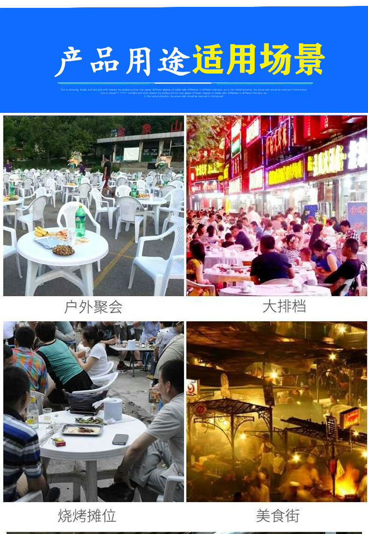 ナイトマーケットの屋台の厚いプラスチックビーチチェア、調理済みのゴム製背もたれ、屋外ビールバーベキューレジャーコンビネーションスクエアテーブル