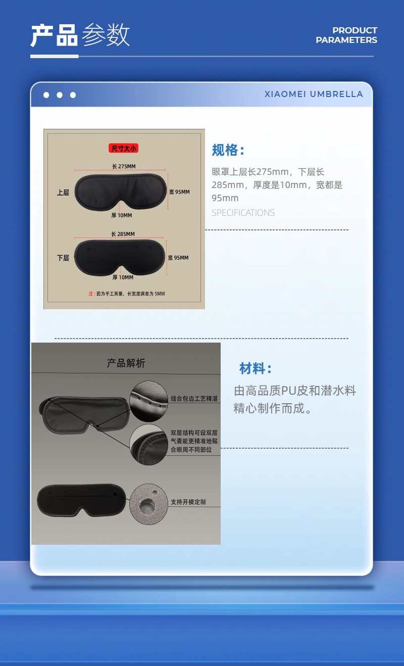 アイマッサージャーアイマスクは柔らかく快適で深い目の保護を加工しており、図面に従ってカスタマイズできます。