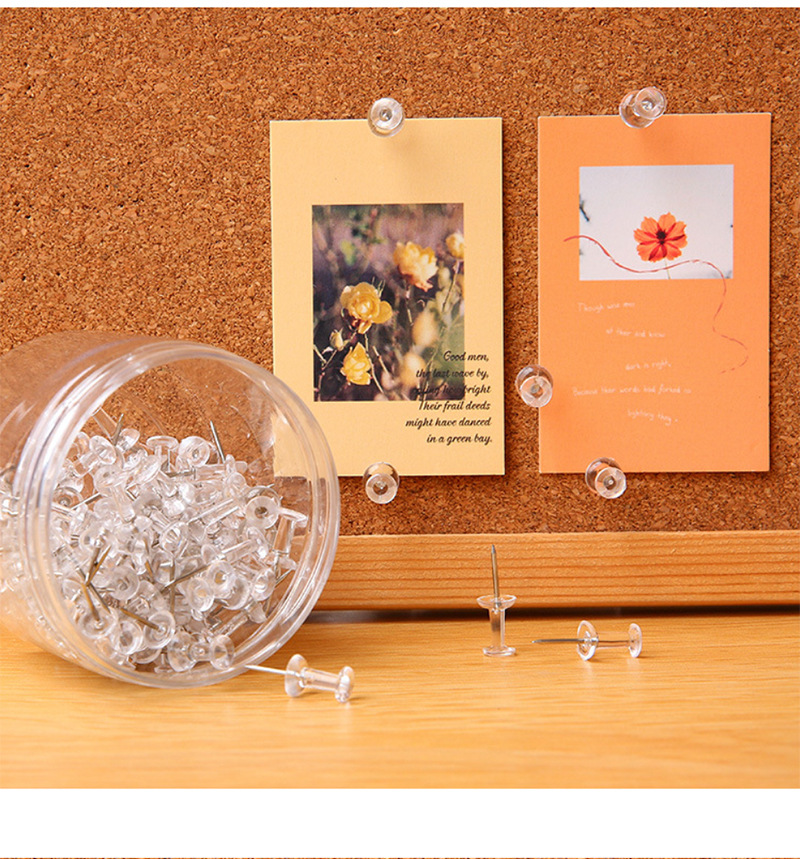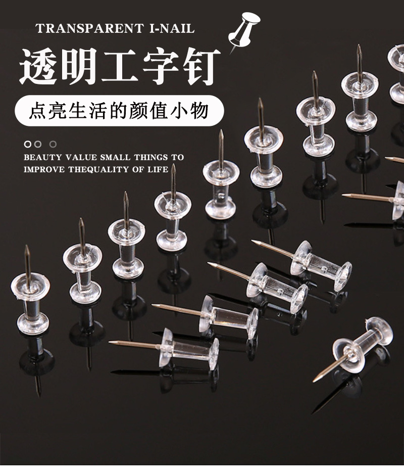 包郵便1000枚透明工字釘画鋲伝言絵画釘写真フェルト壁押し釘ステンレス押し釘