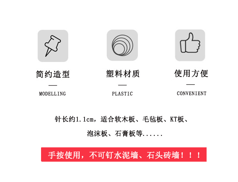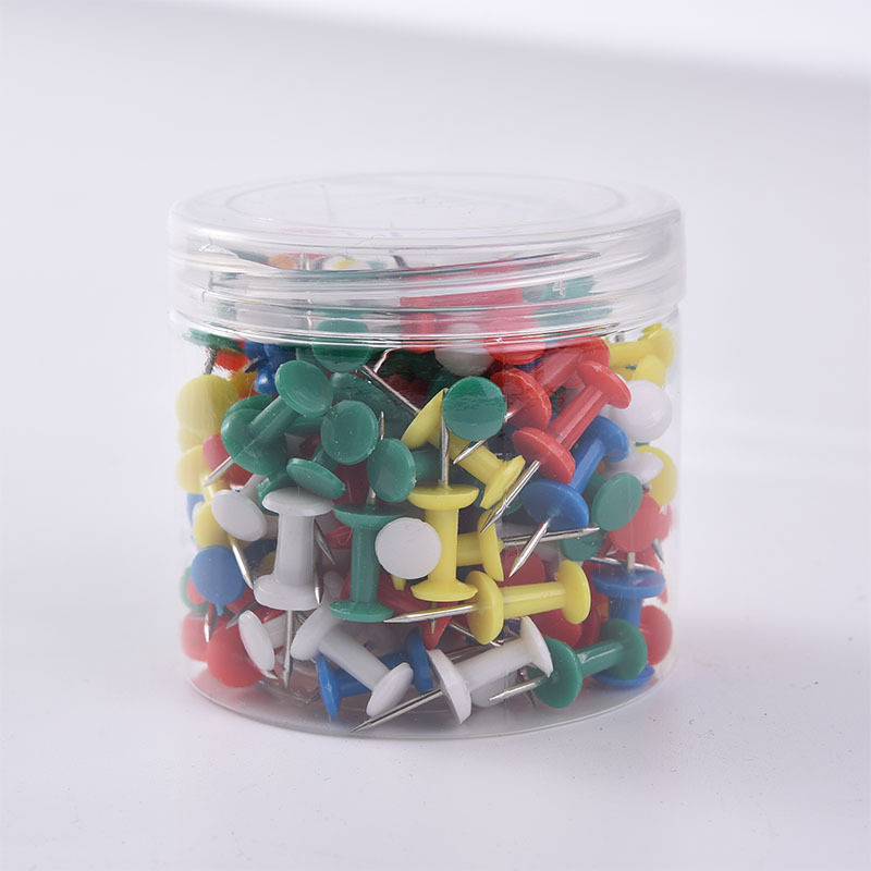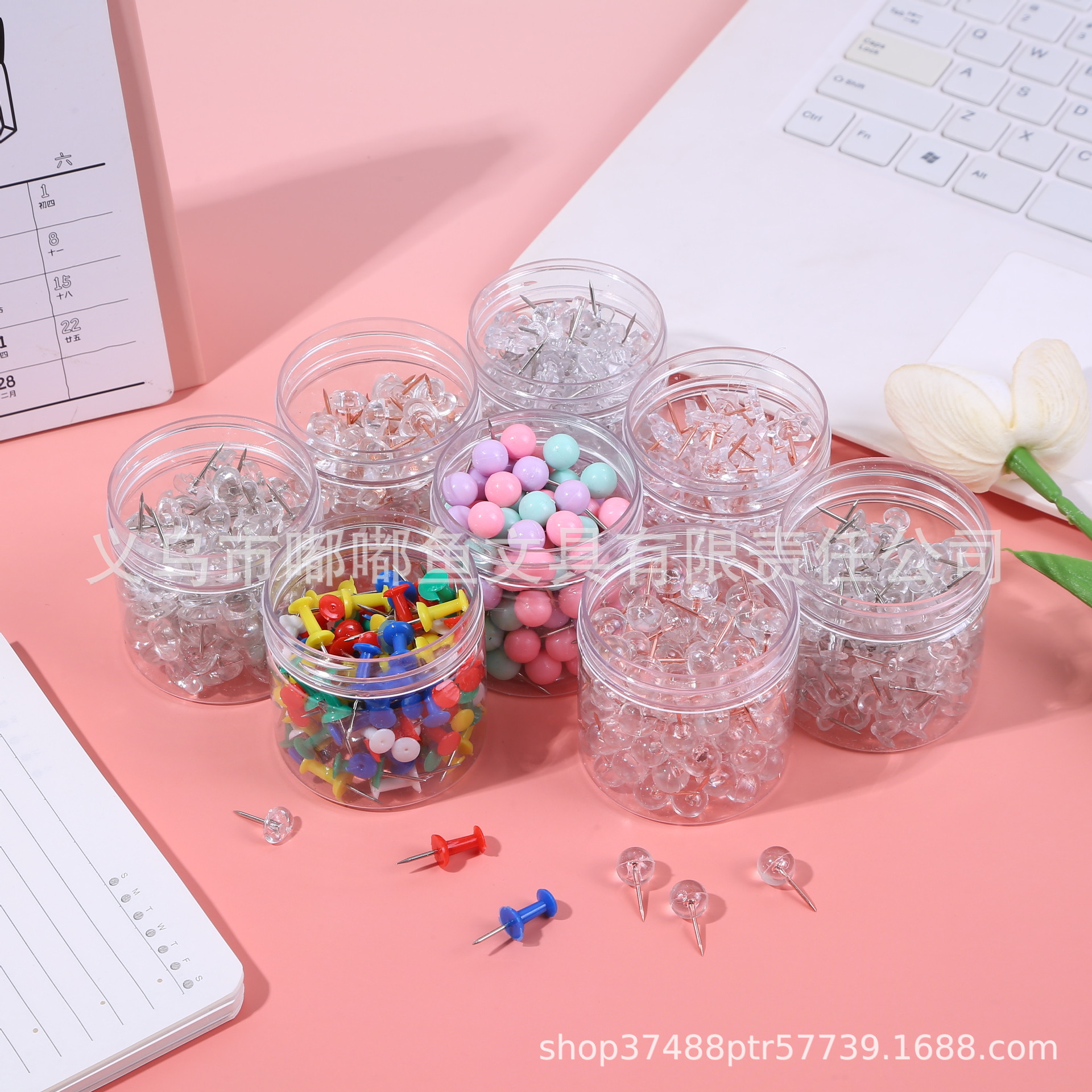 彩色工字钉200枚硬桶装红黄蓝绿白黑色塑料图钉马卡龙软木板按钉