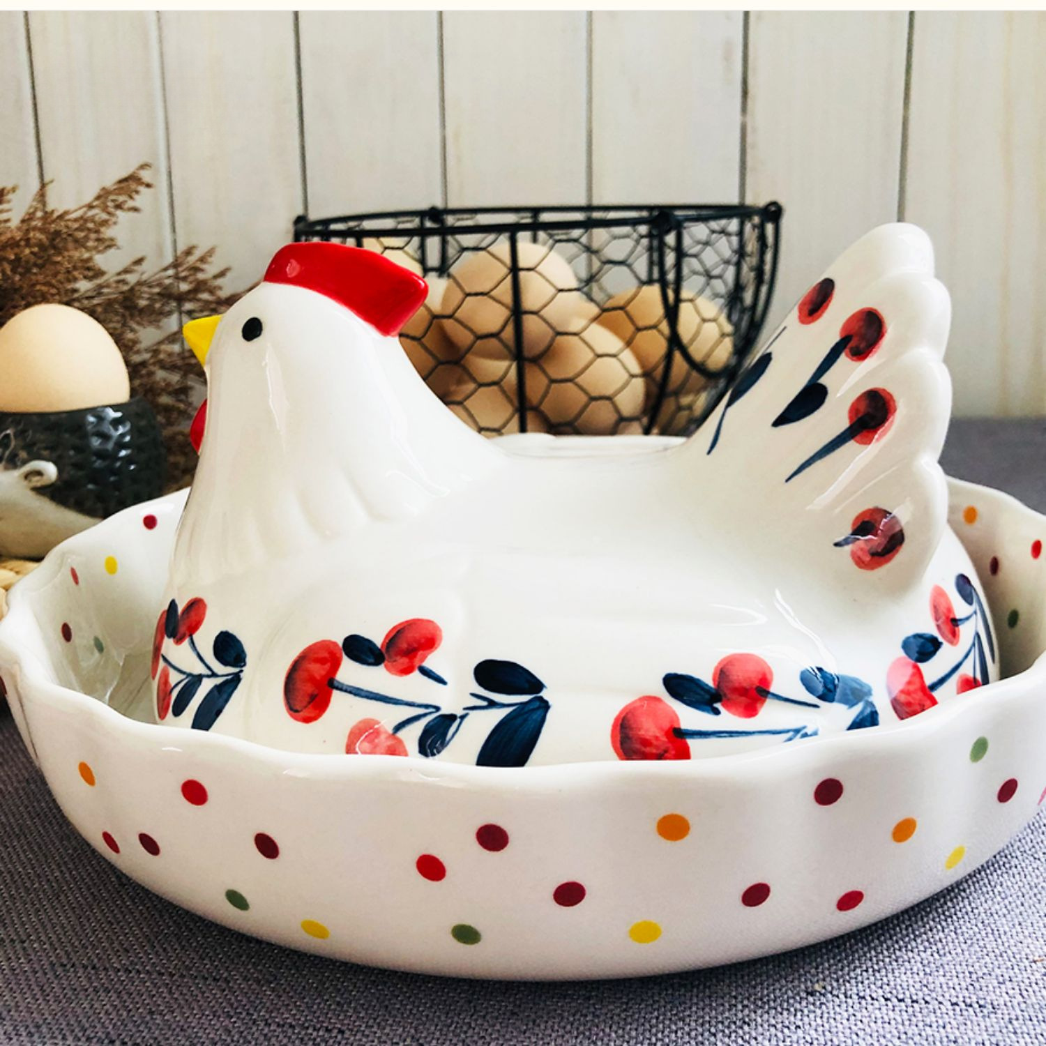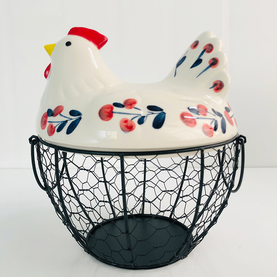 外国からの注文セラミックベーキングパン、オンドリの形をしたピザプレート、下絵付けの卵バスケット、クリエイティブな鉄製の収納バスケット