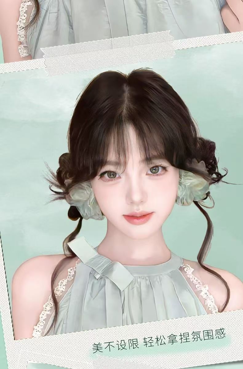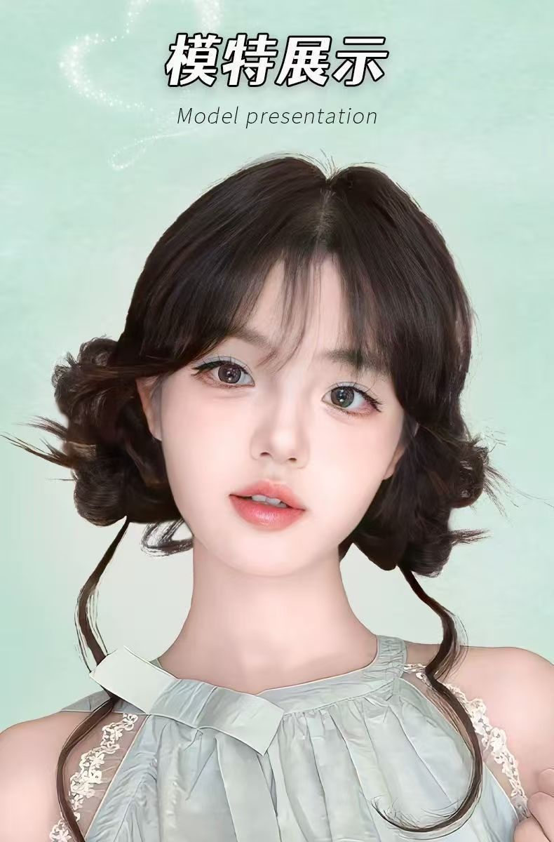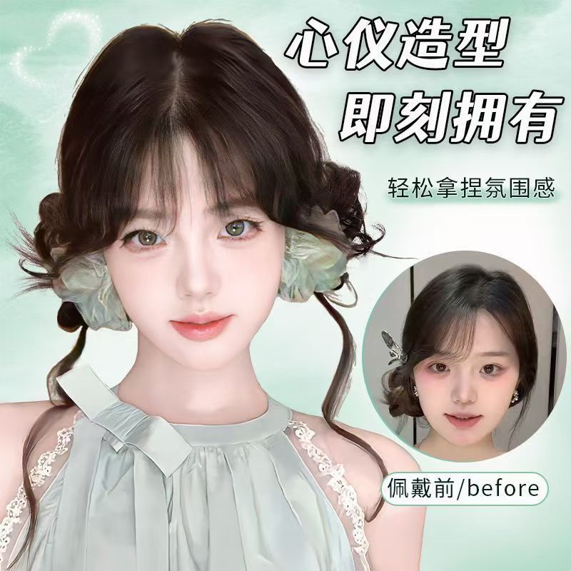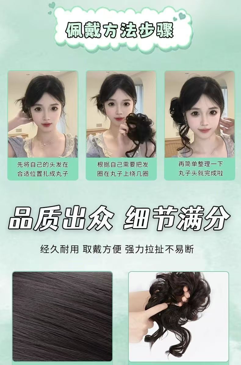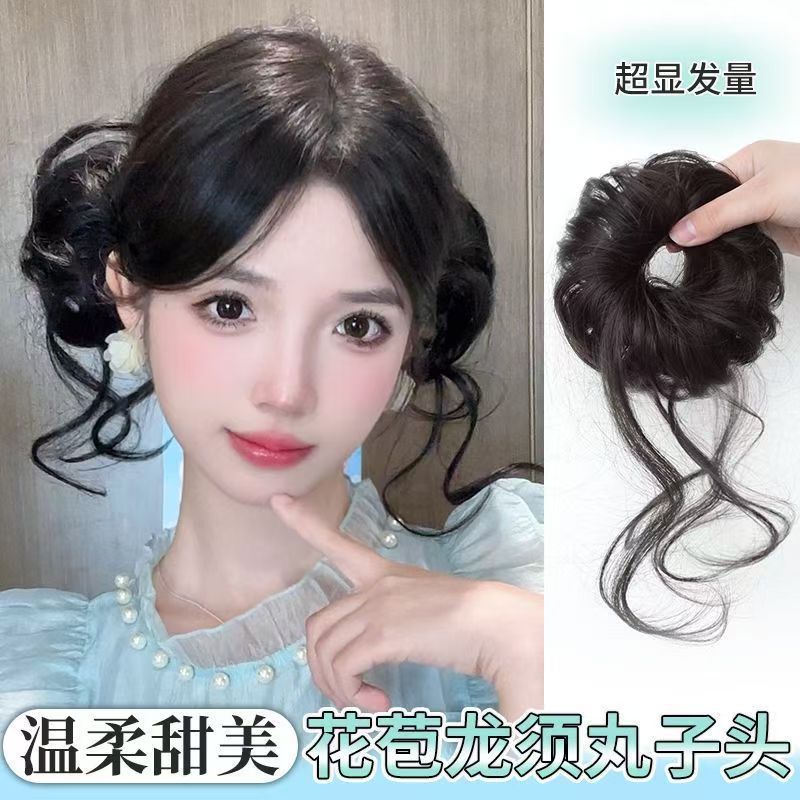 女性用龍ひげサイドミートボールヘア、優しいヘアアーティファクト、新しい中国風ヘアゴム、ふわふわ、昔ながらの風味、怠惰で自然なつぼみヘア