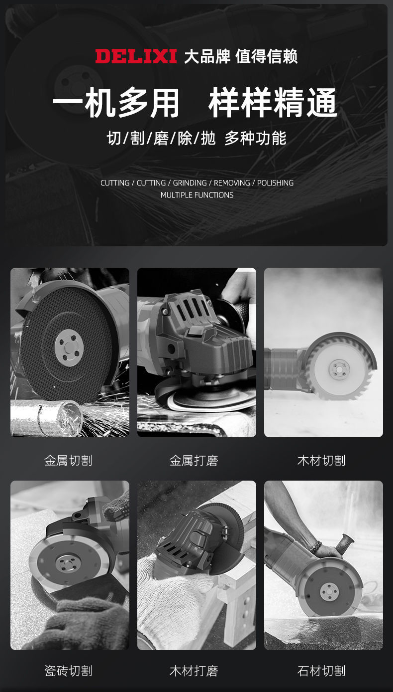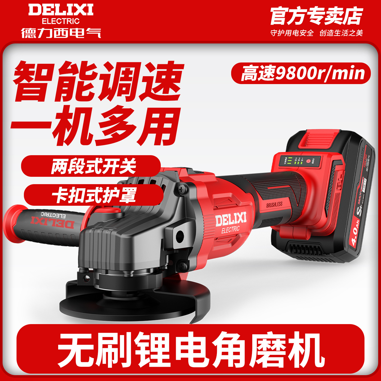 德力西充电式角磨机多功能打磨手磨机家用无刷切割机抛光机砂轮机